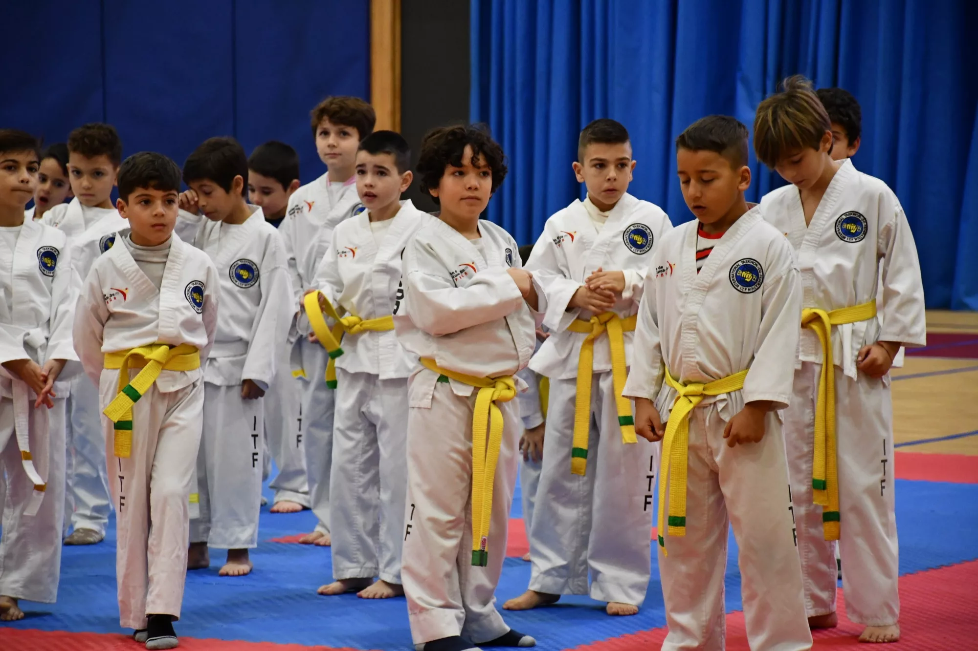 170 participantes, de entre 4 y 13 años, de la escuela base de Taekwon-Do ITF han demostrado sus dones ante sus familias con dos modalidades: Formas Tuls y reto de patada lateral.