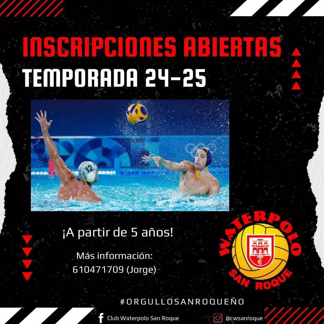 El Club Waterpolo San Roque ha abierto el periodo de inscripciones para la temporada 2024-2025 para jugadores de todas las edades a partir de los 5 años.