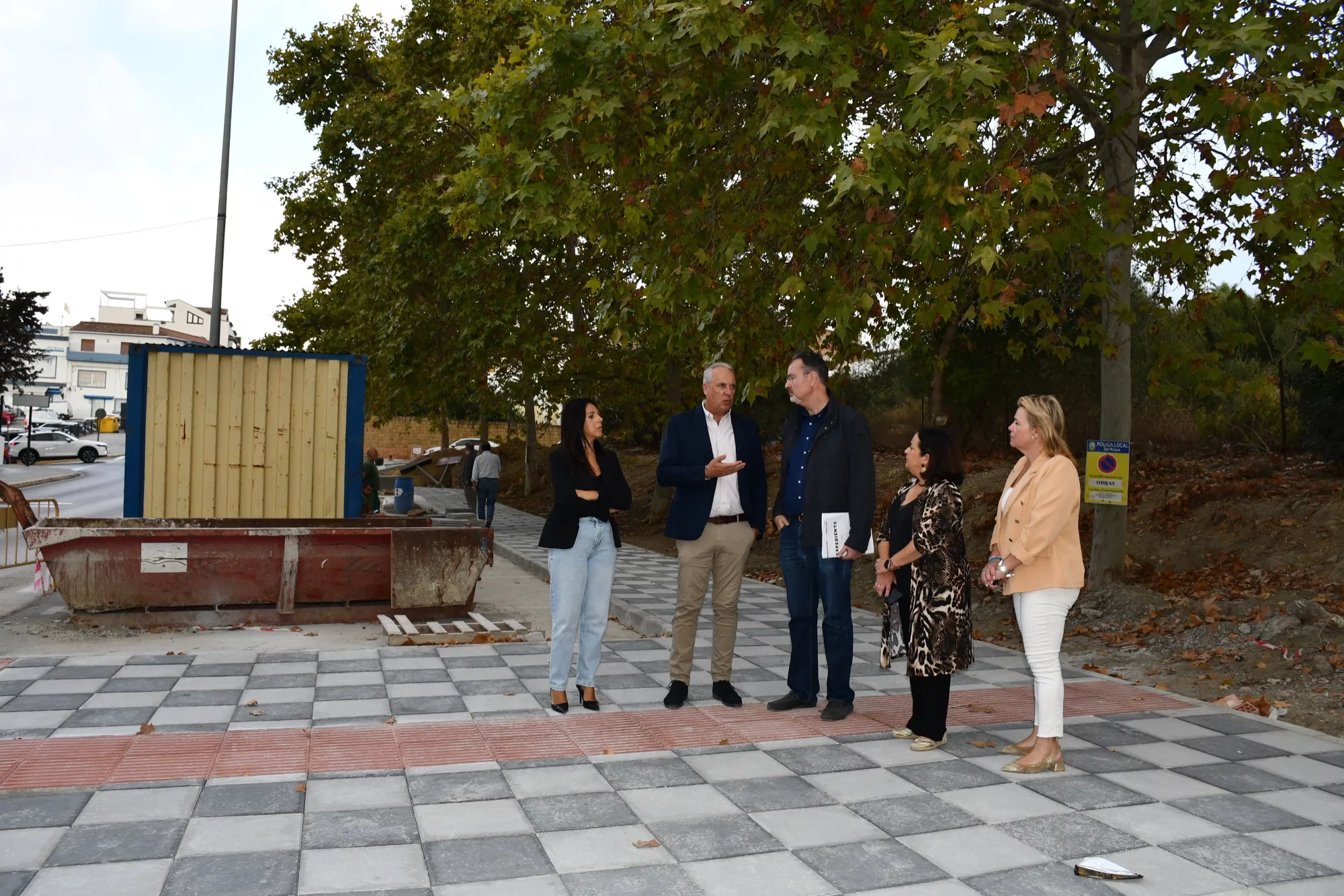 El alcalde de San Roque, Juan Carlos Ruiz Boix, junto a la delegada de Obras y Servicios, Belén Jiménez, y otros ediles, han visitado las obras que se están realizando de un nuevo acerado frente al colegio Gloria Fuertes, que se encuentra al final de la avenida Los Canos, al principio de la avenida Ciro Gil, entre Pueblo Nuevo y Guadiaro.