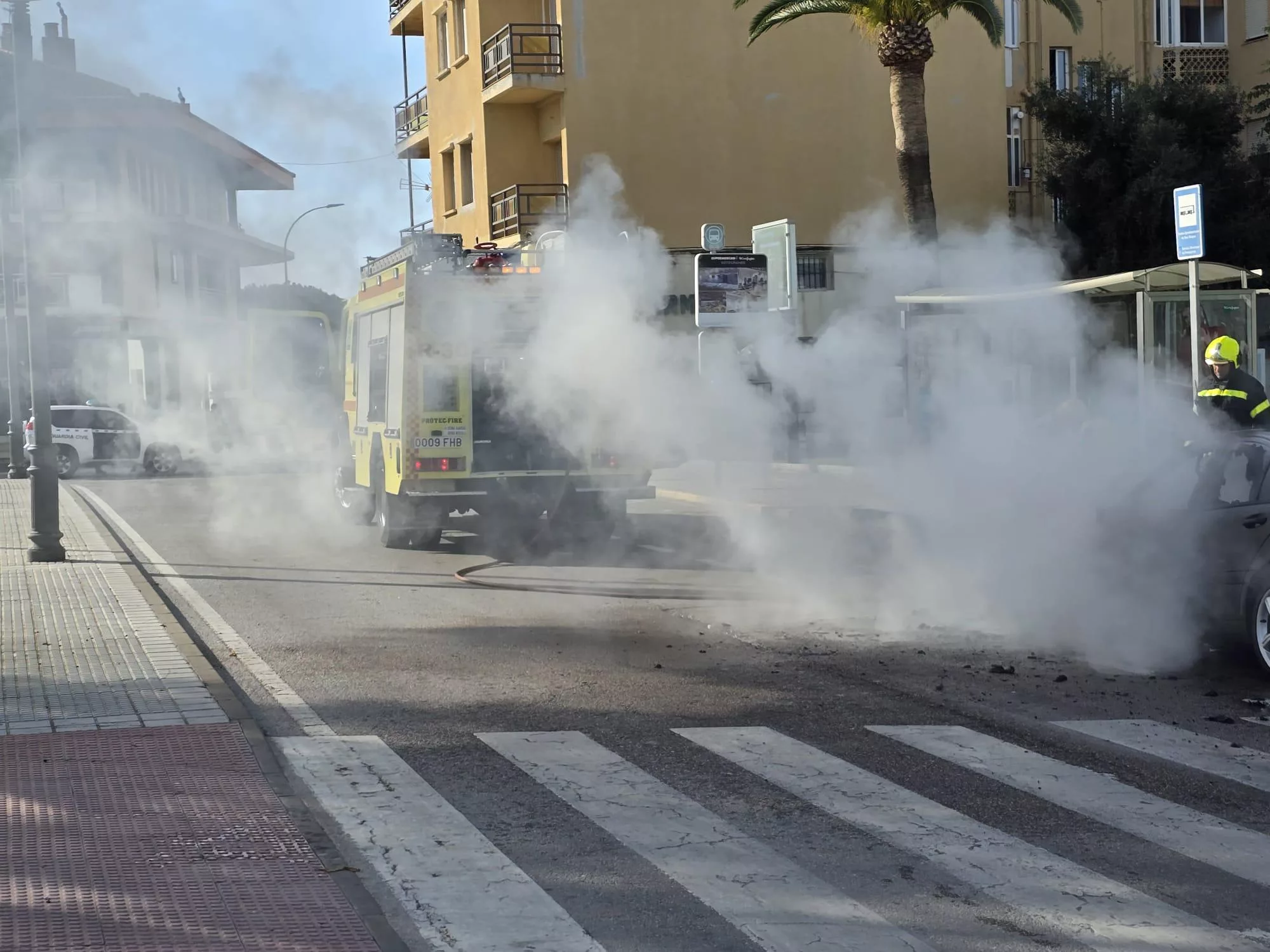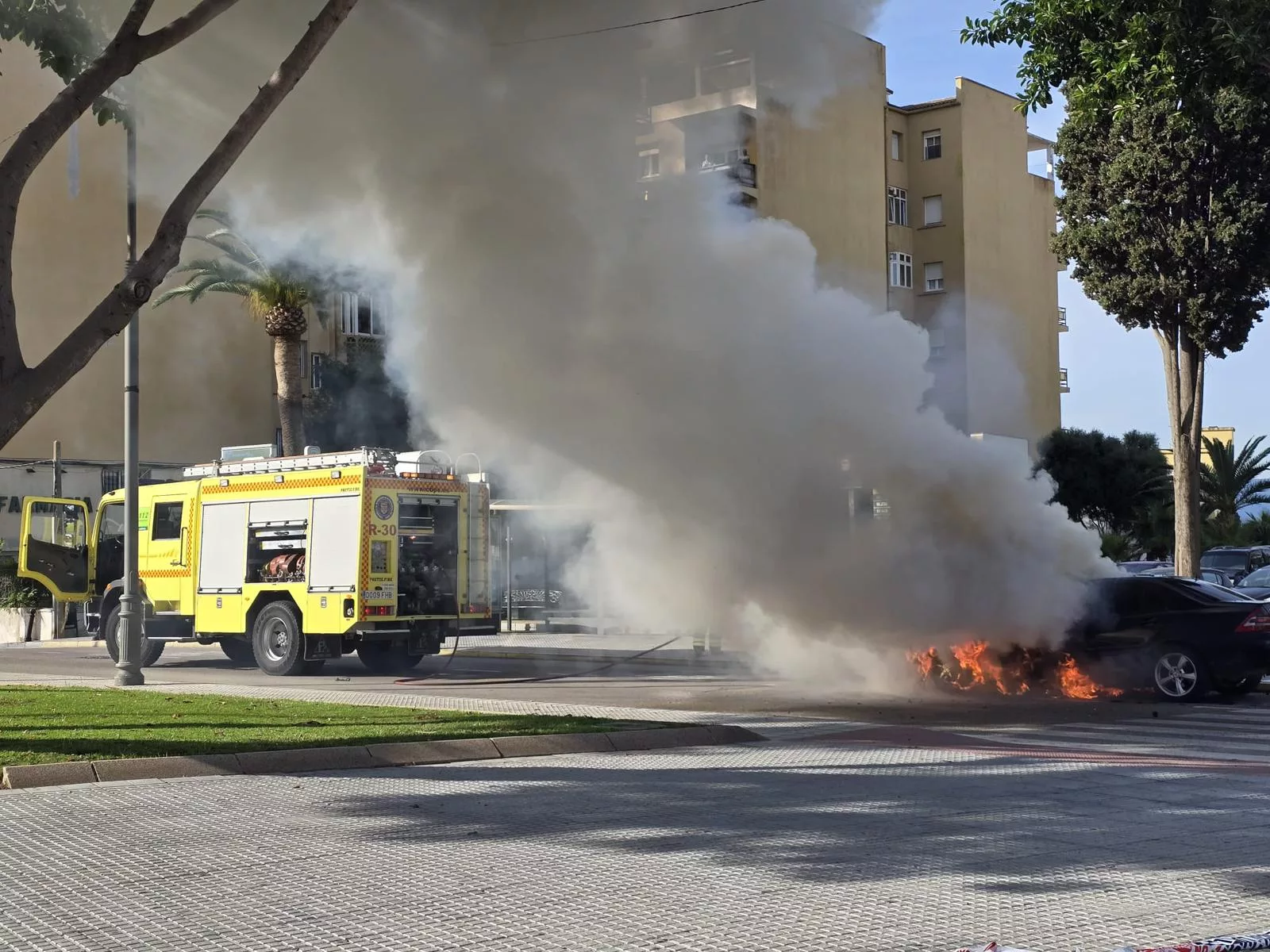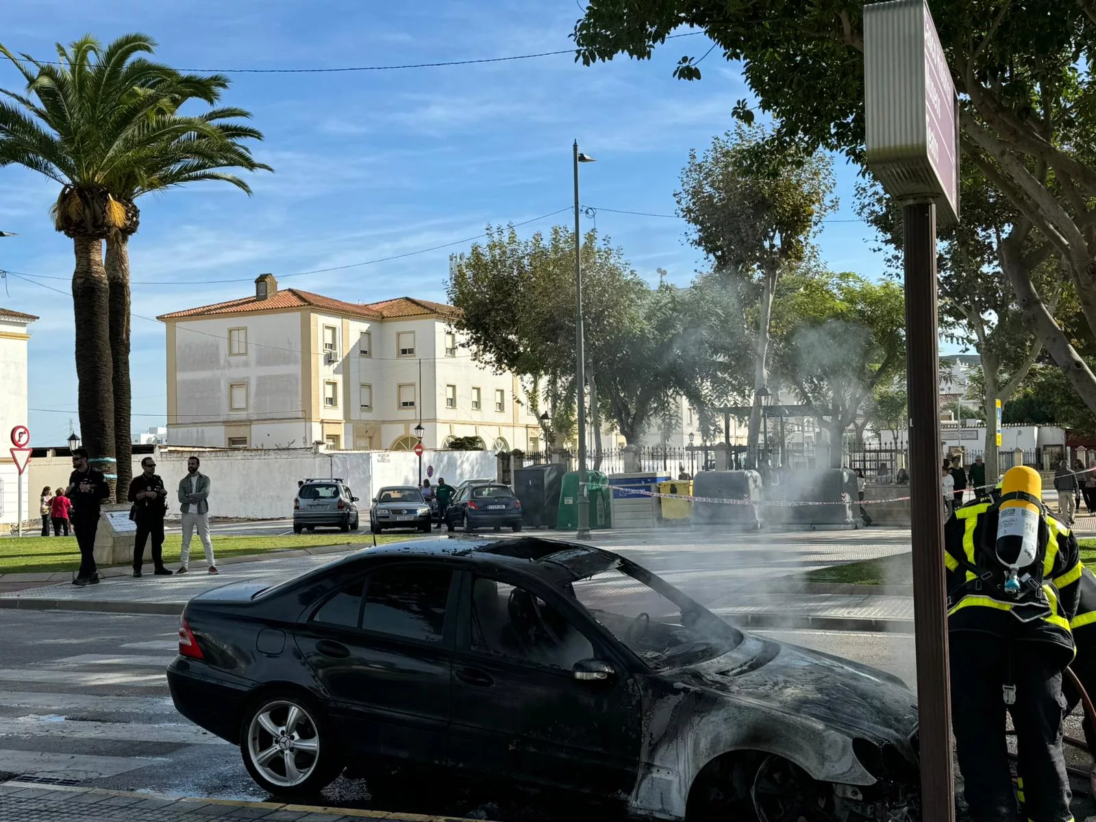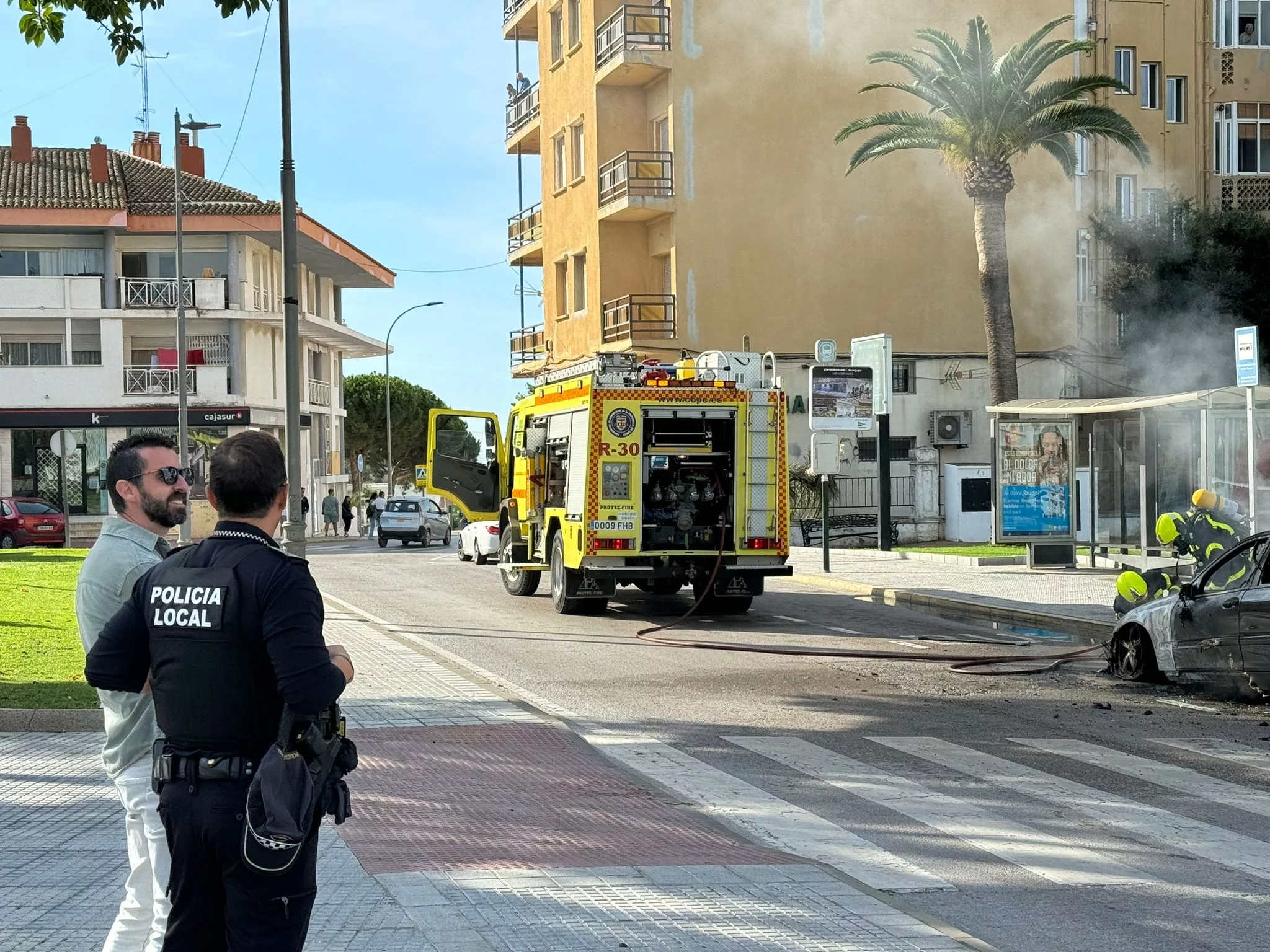 La Policía Local de San Roque, una dotación del consorcio de bomberos y la Guardia Civil han actuado esta mañana en el incendio de un vehículo en la zona de la Alameda de San Roque, el incendio del que se desconoce su origen se produjo cuando el vehículo circulaba los la carretera frente a la Alameda de Alfonso XI.