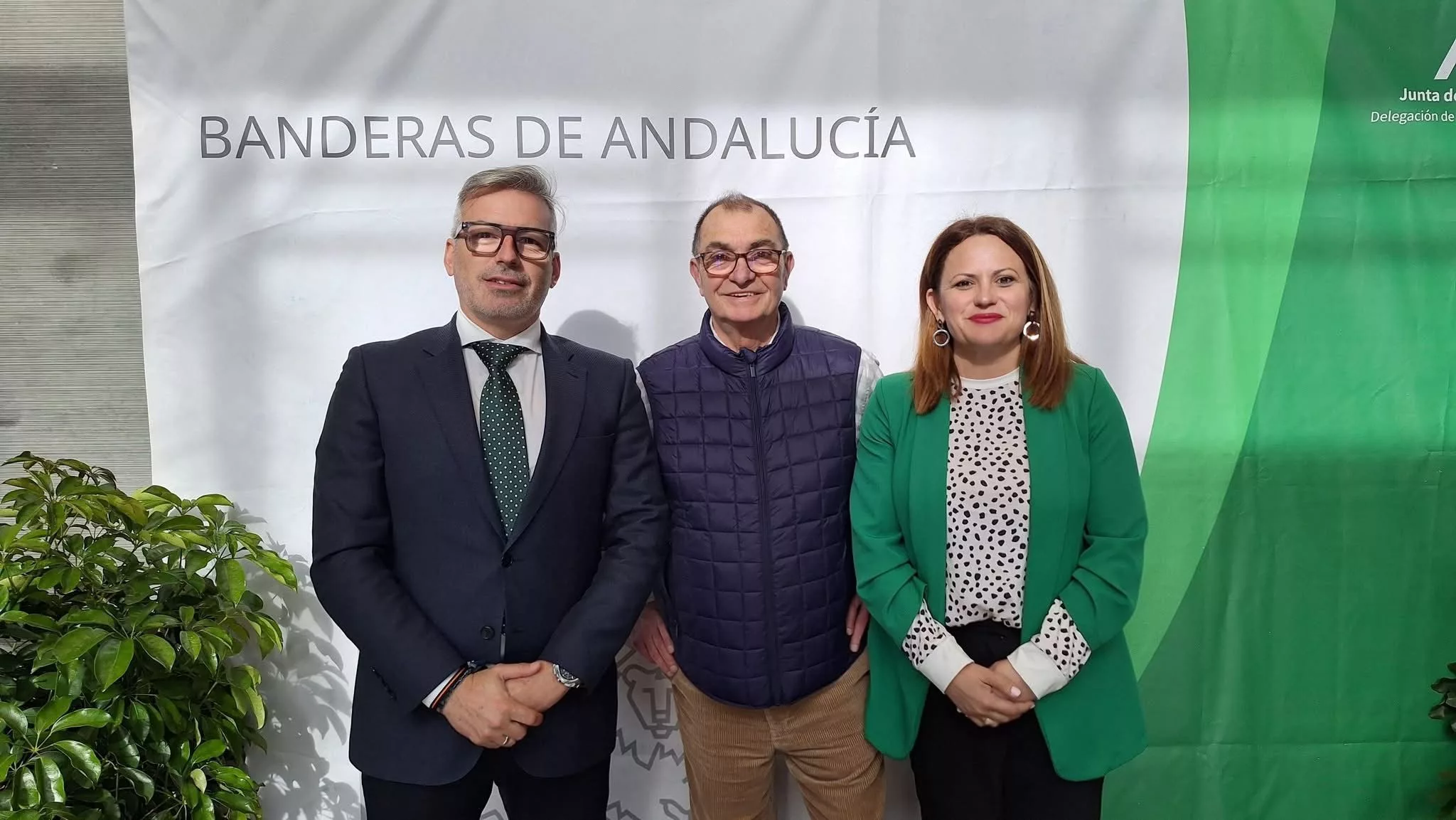Lucas Extremera, en nombre del jugador olímpico de voley playa sanroqueño Adrián Gavira, ha recogido esta mañana la Bandera de Andalucía del Deporte en la provincia de Cádiz, correspondientes al año 2025.