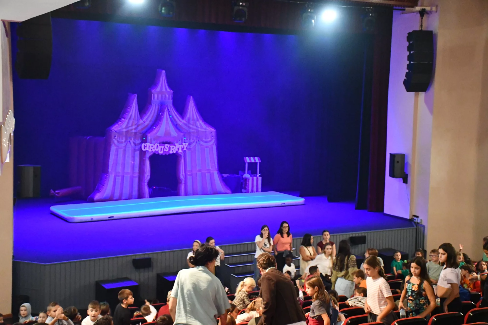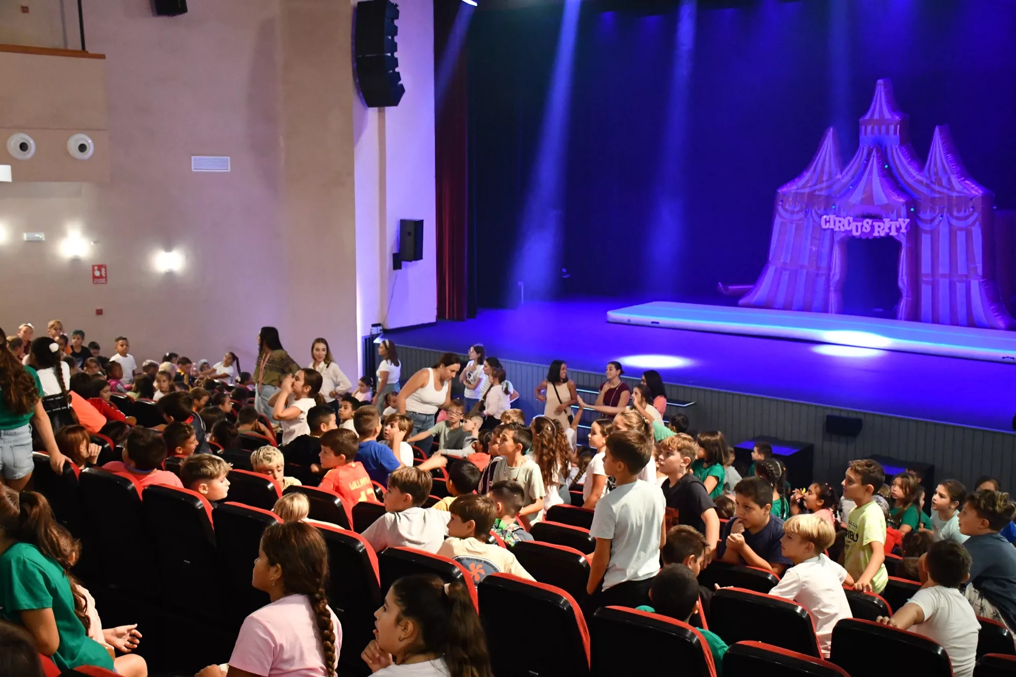 Más de un centenar de alumnos de Primaria de los colegios Santa Rita y Sagrado Corazón, de la zona de la Bahía, visitaron este martes el Teatro Juan Luis Galiardo para disfrutar del circo y el teatro, gracias al Festival Sanrotín. Esta décima edición se dirige íntegramente al alumnado del municipio.