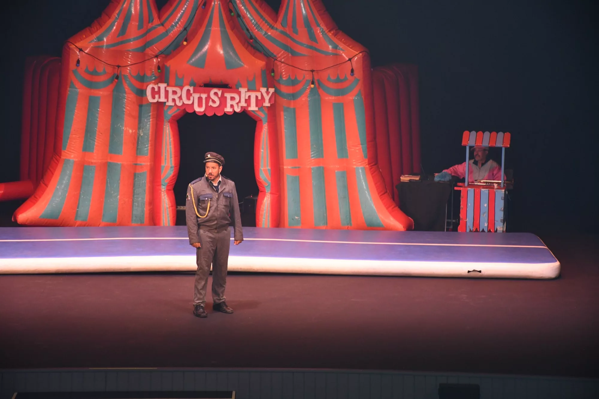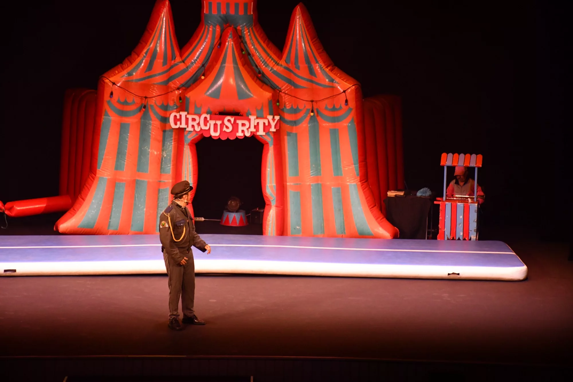 El espectáculo corrió a cargo de la compañía de Ácana, que representó “Circurity”, una propuesta cuidada y plagada de detalles, en la que el humor y las disciplinas circenses maridan en una comunión indisoluble a través de las aventuras de Giovanni, el atolondrado guardia de seguridad del Circus Rity.