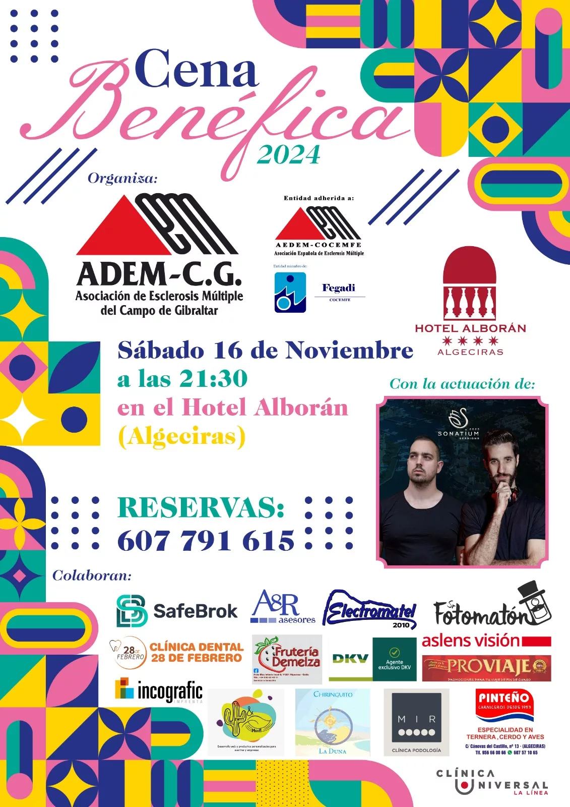 ADEM-CG, la Asociación de Esclerosis Múltiple del Campo de Gibraltar organiza su Cena Benéfica 2024 el sábado 16 de noviembre en el Hotel Alborán en Algeciras a partir de las 21:30 horas. Este encuentro cuenta con al apoyo del Ayuntamiento de San Roque, y en este sentido la delegación de Salud, dirigida por la concejal Rocío Fernández, colaborará con la citada asociación difundiendo la cita e invitando a todos los interesados a que participen. Las reservas se pueden realizar llamando al teléfono 607. 791615.