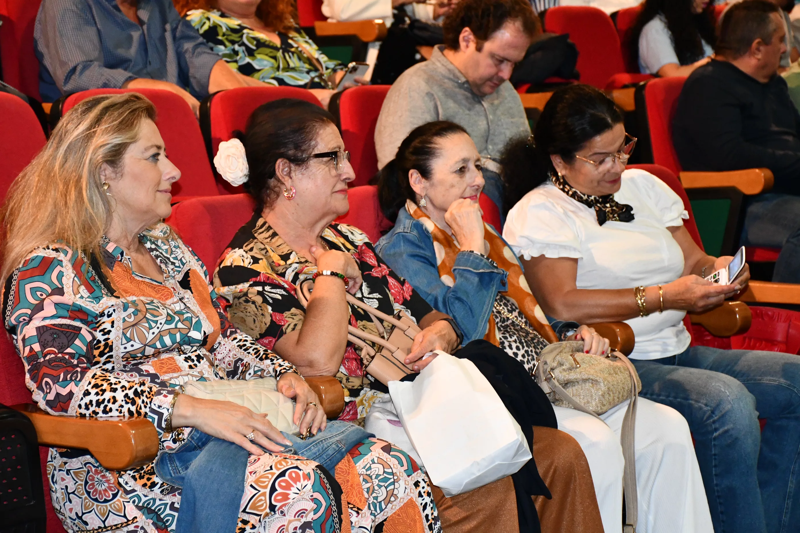 La teniente alcalde de Cultura, Ana Ruiz, junto a otros ediles del equipo de gobierno han asistido al espectáculo y han saludado a los artistas pocos minutos antes del inicio de las actuaciones y de la conferencia.