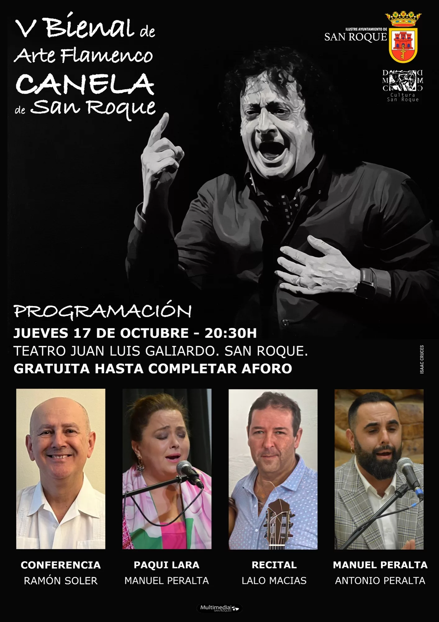 La V Bienal de Arte Flamenco Canela de San Roque es una actividad organizada por la Delegación de Cultura del Ayuntamiento, que dirige la teniente de alcalde Ana Ruiz. Se inició el pasado 3 de octubre, y se han programado nueve actividades en el Teatro Juan Luis Galiardo a lo largo de tres semanas, si bien previamente hubo sendas actuaciones organizadas por las peñas flamencas de San Roque y del Valle del Guadiaro.