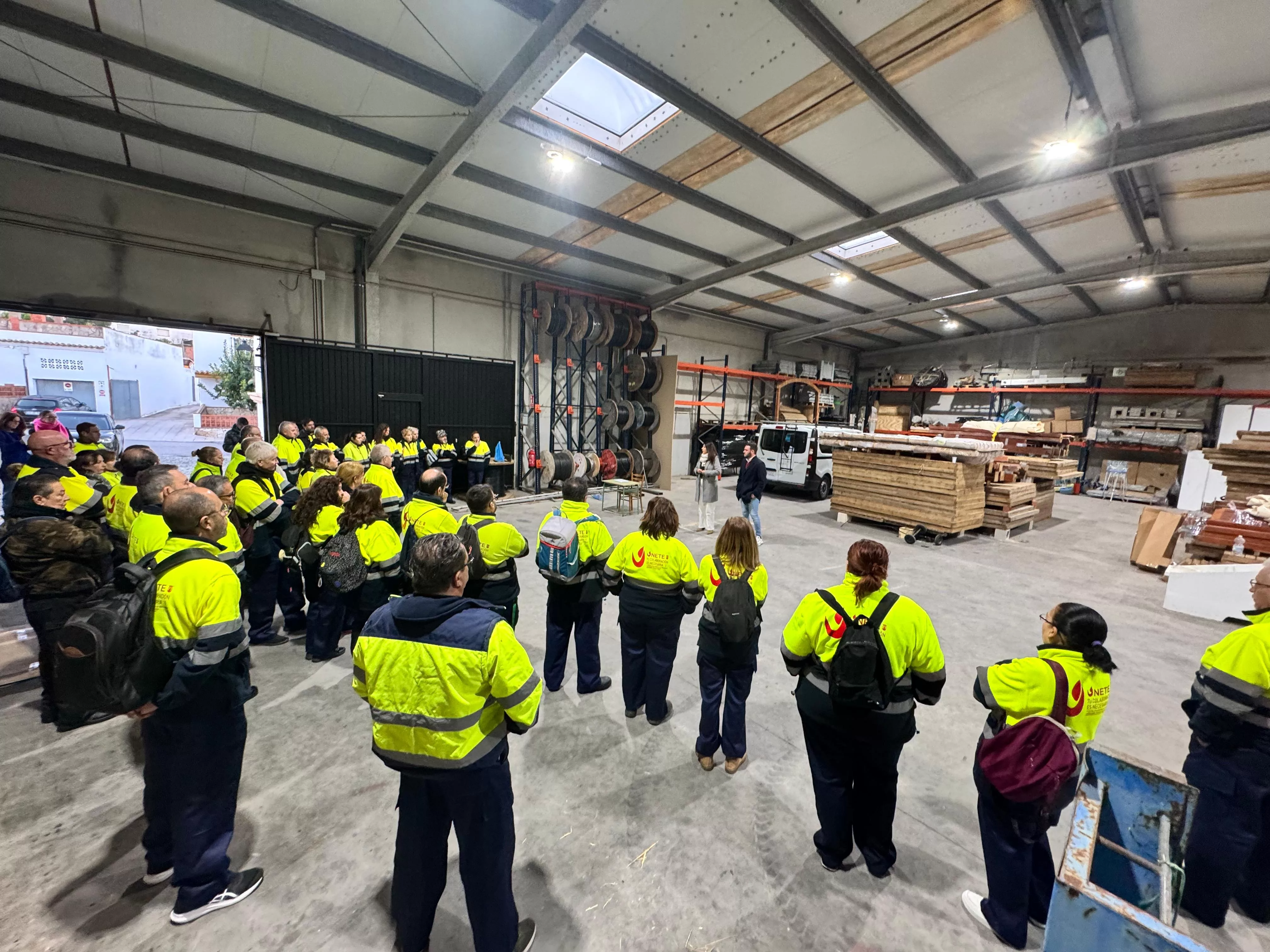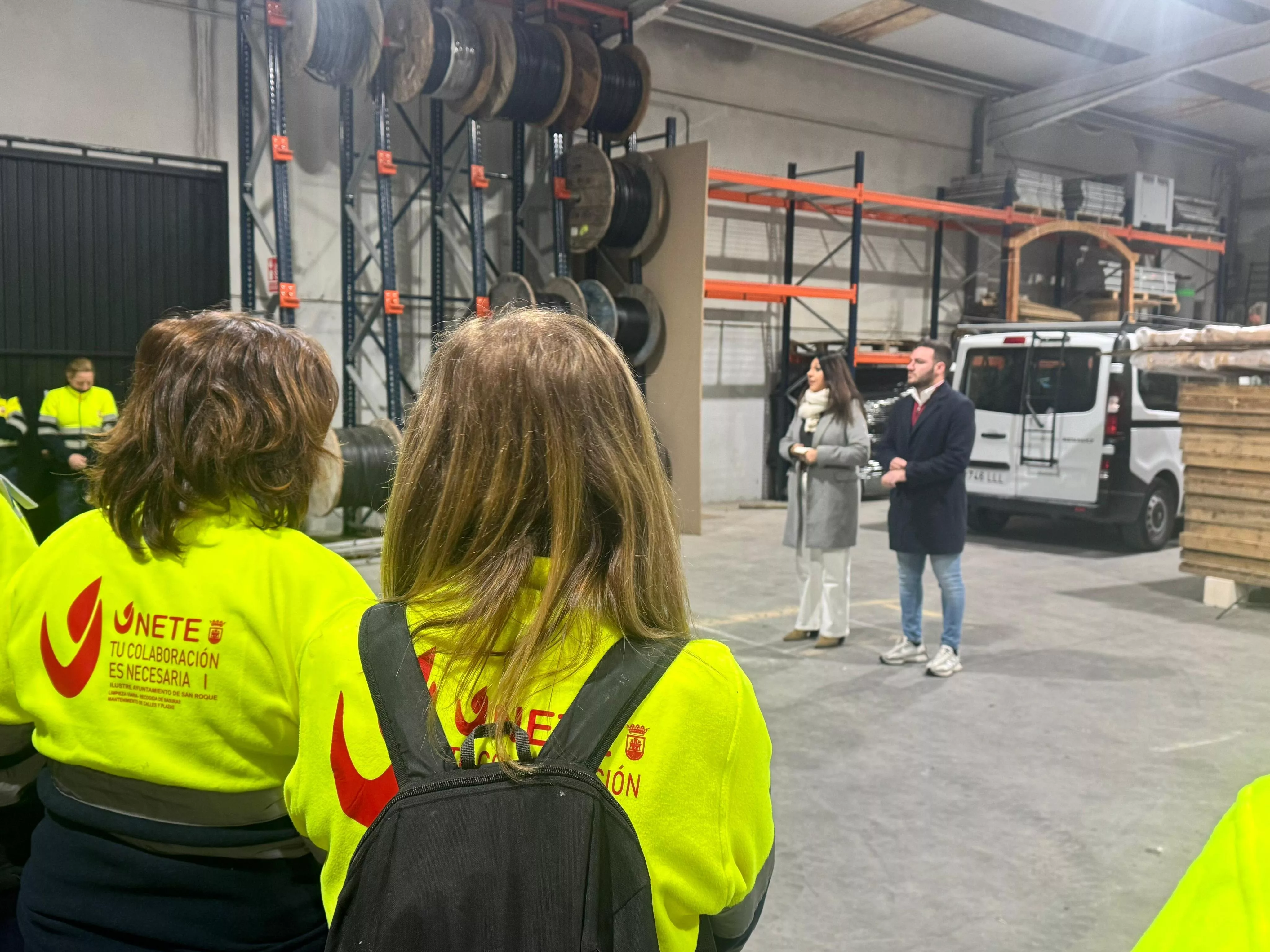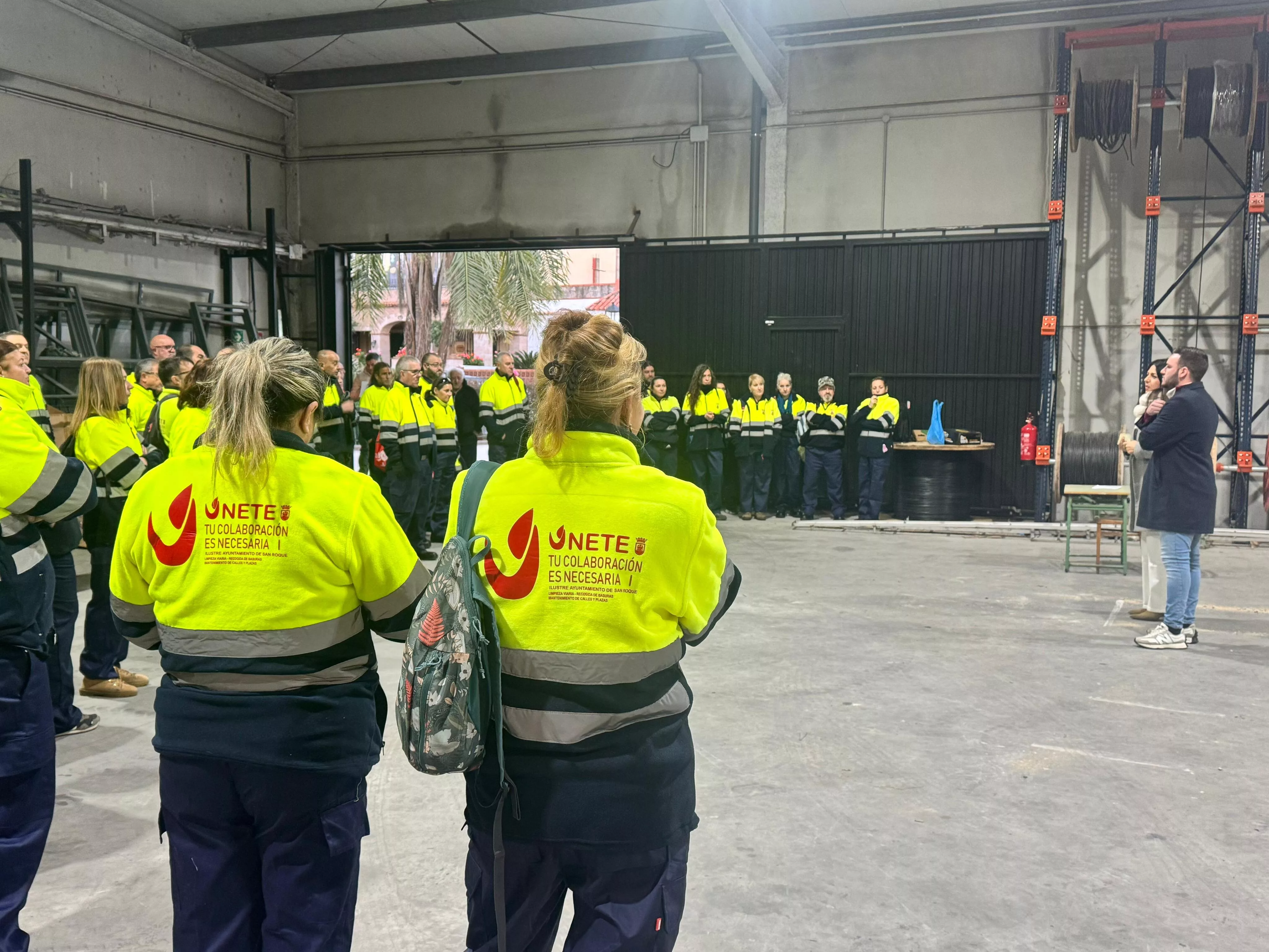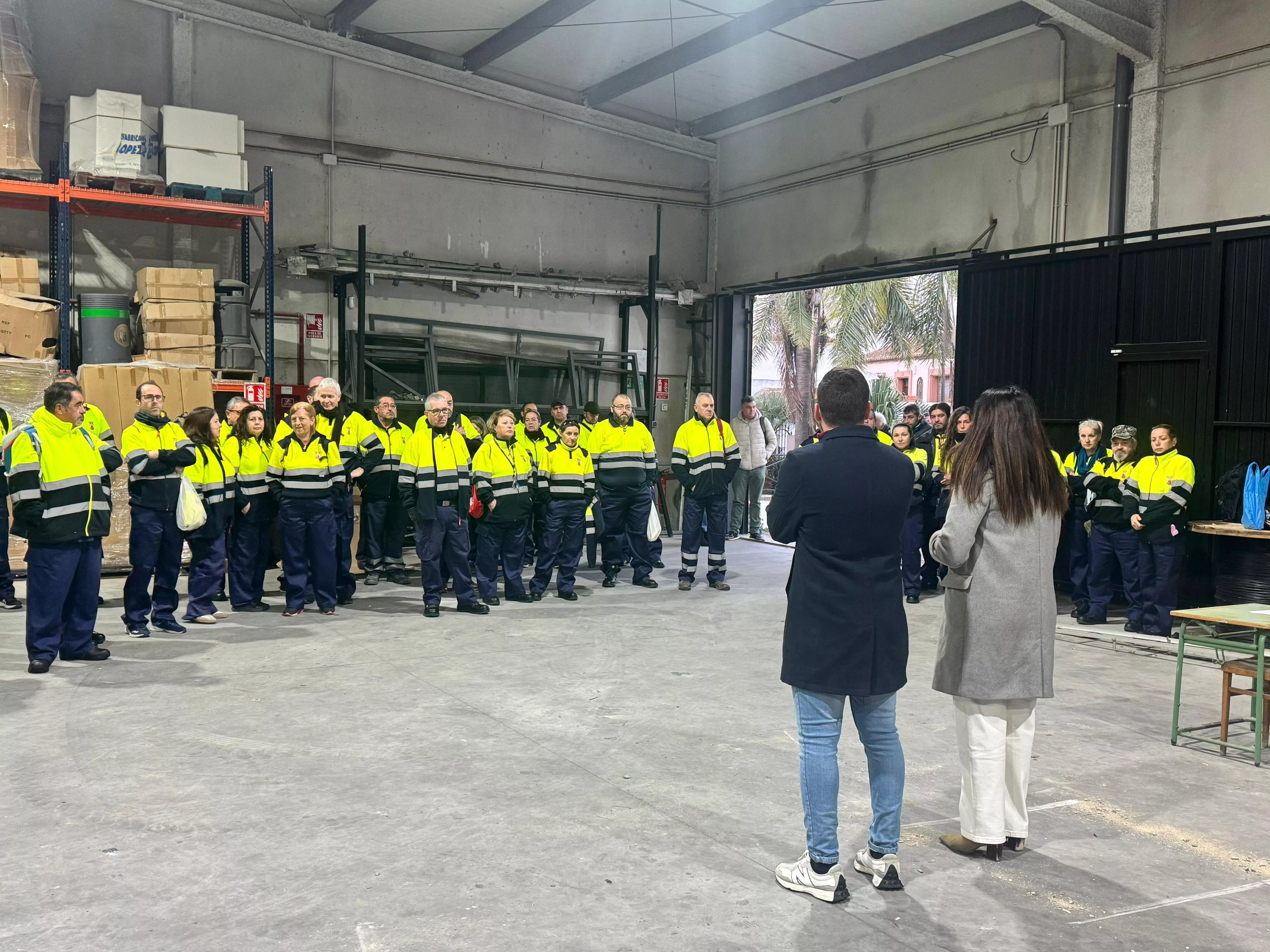 La teniente de alcalde de Obras y Servicios y vicepresidenta de Emadesa, Belén Jiménez, junto al concejal de Empleo, Fernando Vega, han dado la bienvenida a la primera tanda de trabajadores, 50 de un total de 100 desempleados que se incorporarán durante este mes de diciembre al Plan de Empleo de Emadesa.