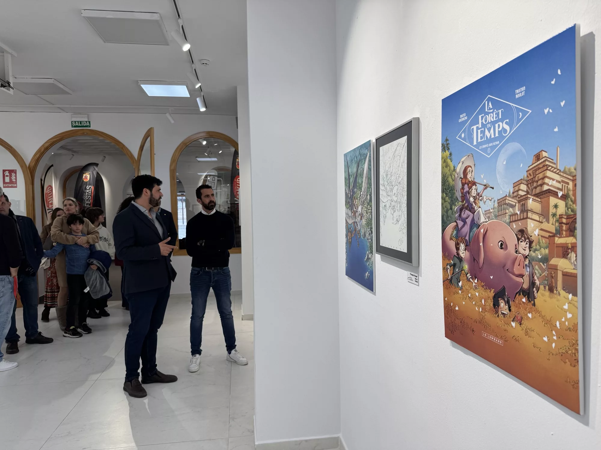El teniente de alcalde de Juventud, David Ramos, y el propio autor, así como amigos y familiares, han participado en el acto de inauguración de esta exposición de originales de esta serie realizada por el linense para el mercado francés. “El bosque del Tiempo” es una serie que combina aventura, magia, fantasía y viajes en el tiempo, de una forma como nunca antes se había visto.