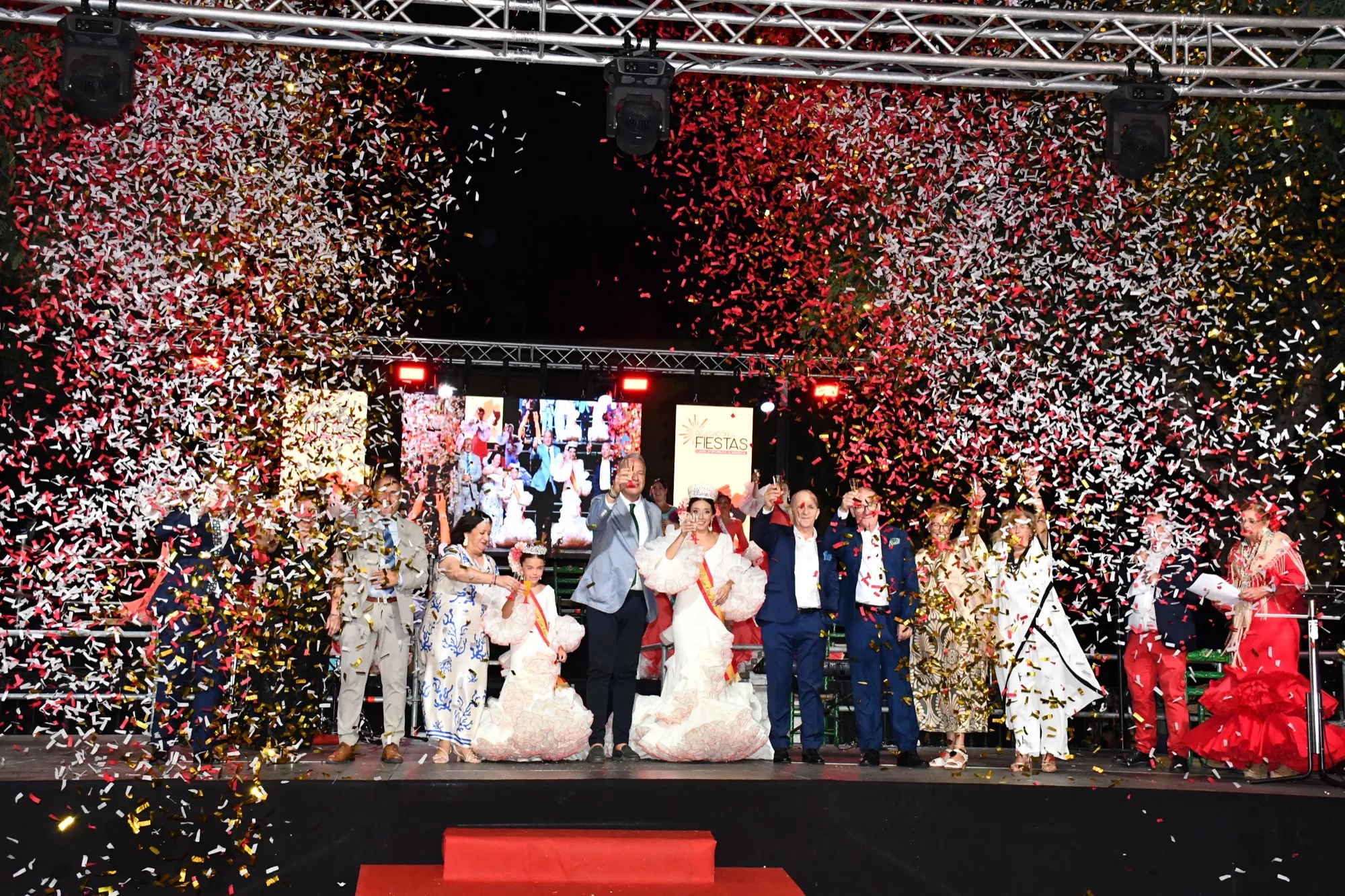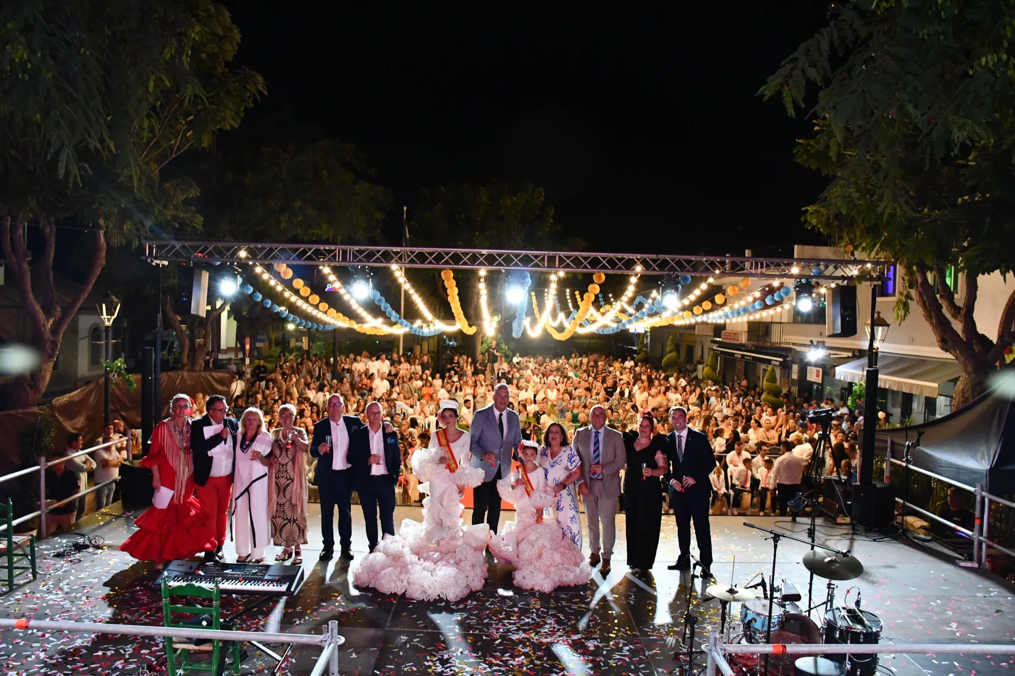 A continuación, subieron al escenario el alcalde, Juan Carlos Ruiz Boix, los tenientes de alcalde de Fiestas, María del Mar Collado, y de la zona, Juan Serván, así como el concejal Alfonso Valdivia, los pregoneros y presentadores, quienes junto a los cortejos infantil y juvenil, realizaron el tradicional brindis para dar oficialmente inicio a la Feria de la Estación de San Roque 2025. Para terminar el acto se contó con la actuación de Piratas Flamencos.