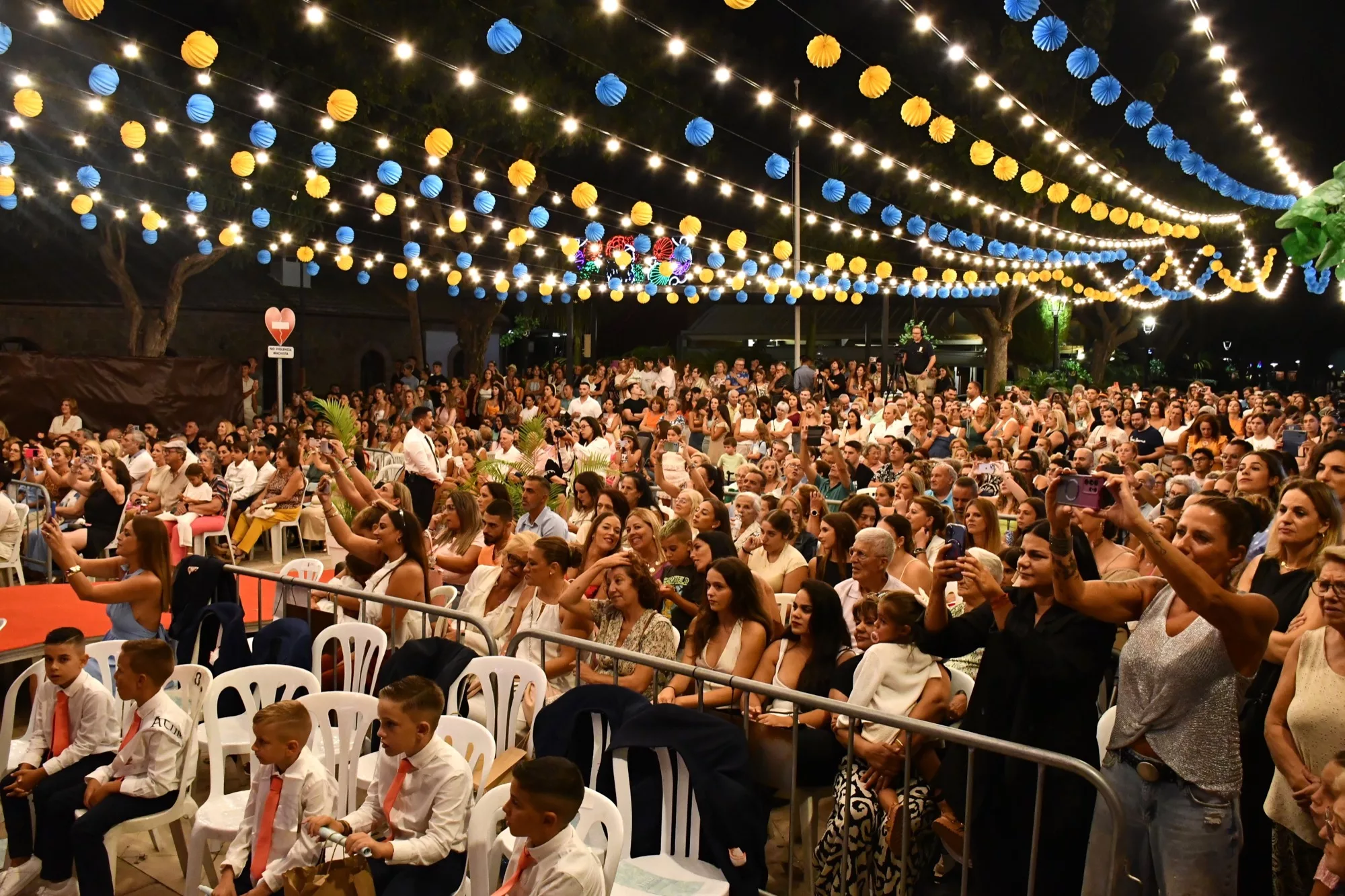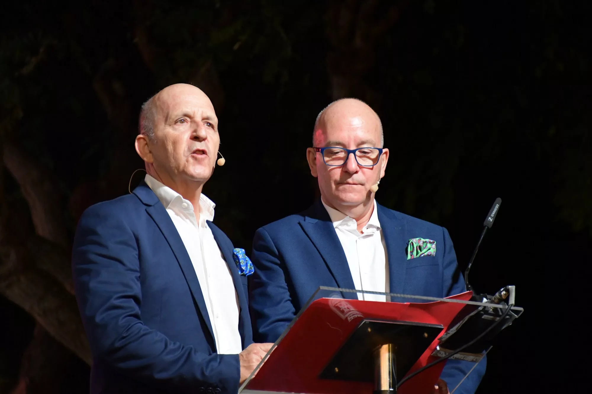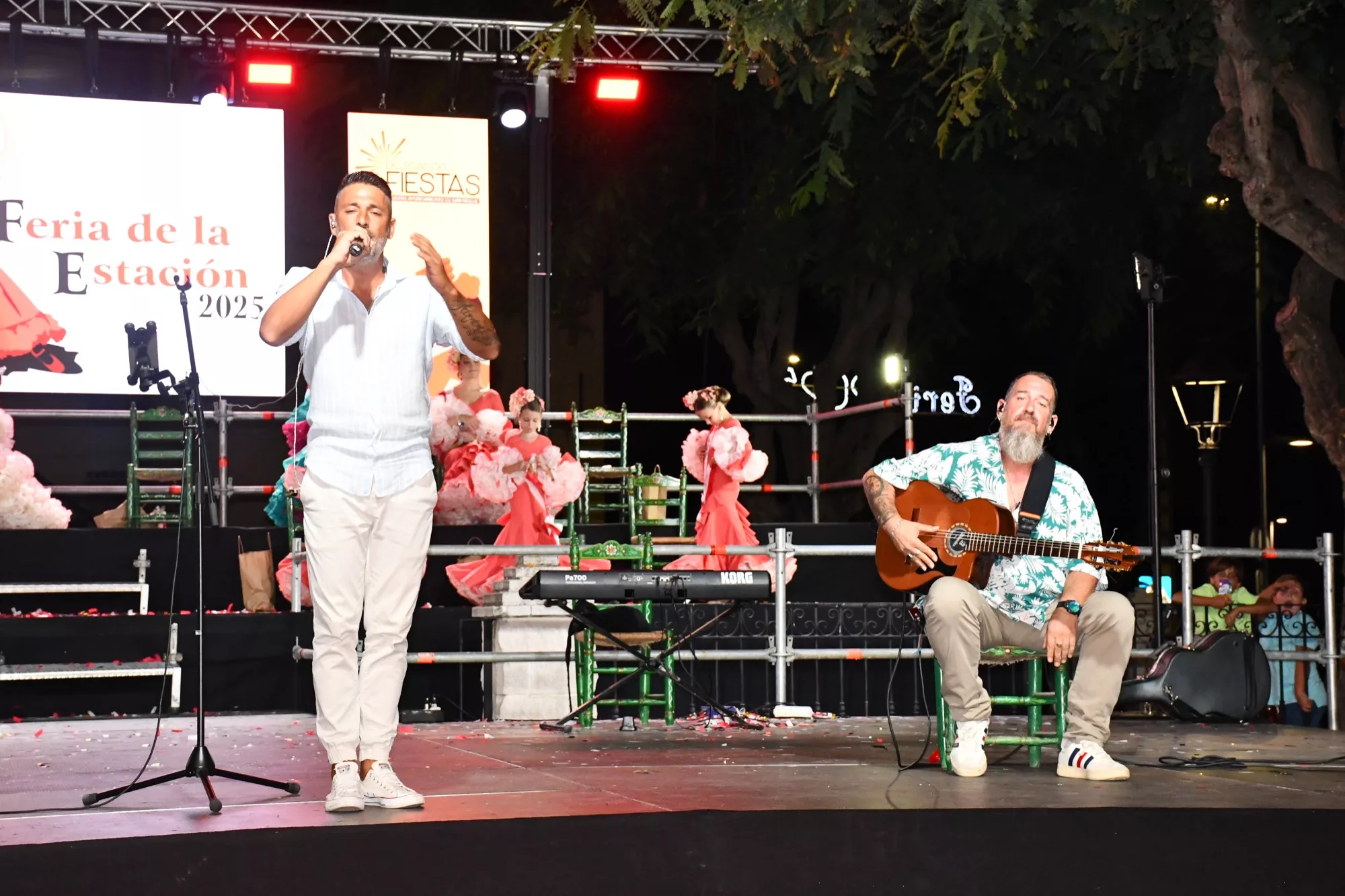 Una vez subieron al escenario reinas salientes y entrantes, así como todo el cortejo de damas, llegó el momento de un pregón original, que este año ha contado con dos pregoneros, los hermanos Juan Carlos y José Luis Lorenzo González, conocidos como “los mellizos de Antonia y Rufino”. Ambos, muy conocidos y queridos en la barriada, desplegaron ciertas notas de humor al recordar momentos célebres de la Estación de San Roque y de los que formaron parte en el pasado.