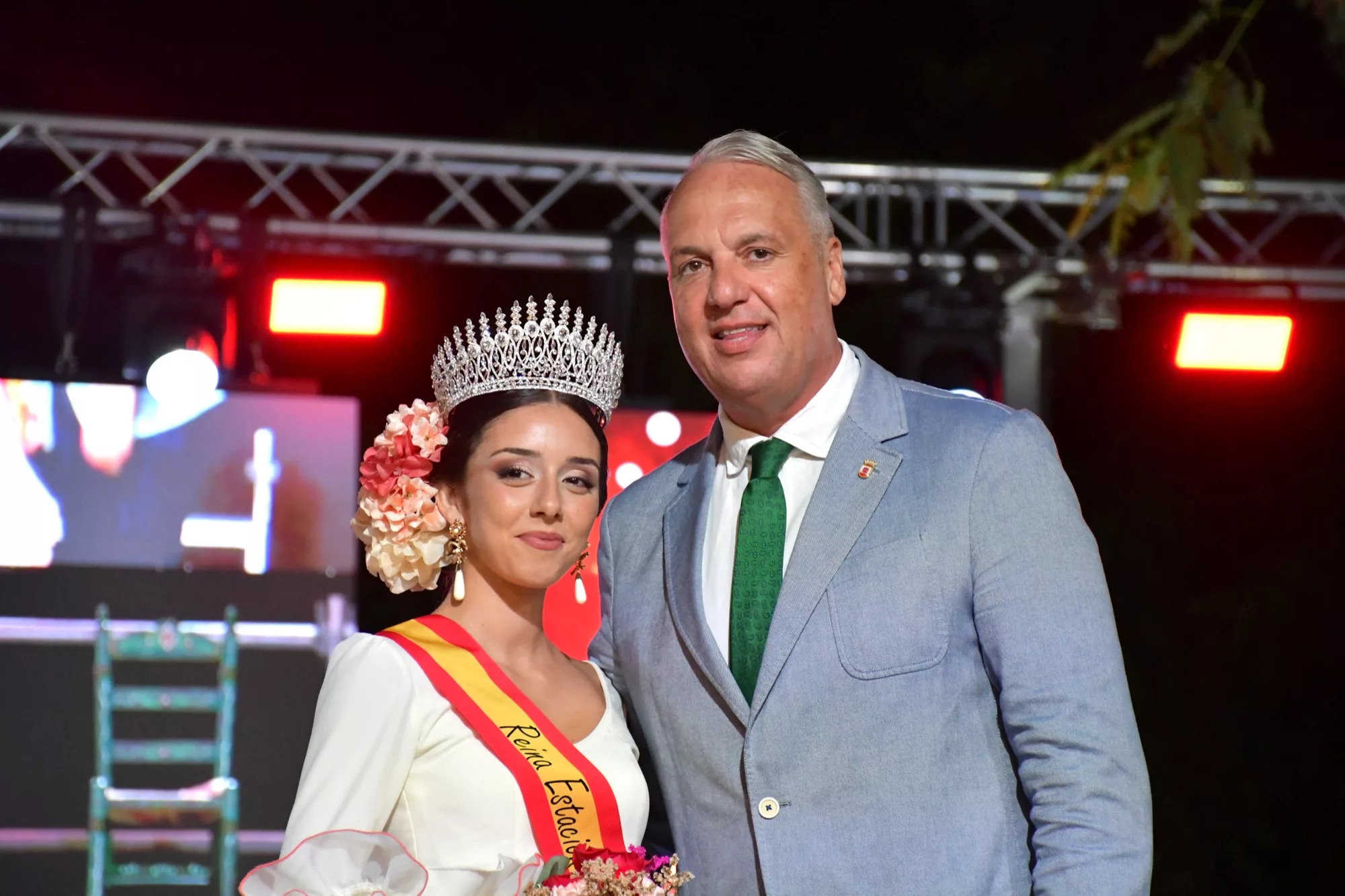 En la noche de este martes se celebró la Coronación de la Feria de la Estación, acto que se desarrolló en el escenario habilitado en la popular Plaza San Bernardo, y al que asistió un numeroso público. Entre el público se contó con el alcalde de San Roque, Juan Carlos Ruiz Boix, la teniente de alcalde de Fiestas, María del Mar Collado, el teniente de alcalde de la zona, Juan Serván, y otros ediles de la Corporación.