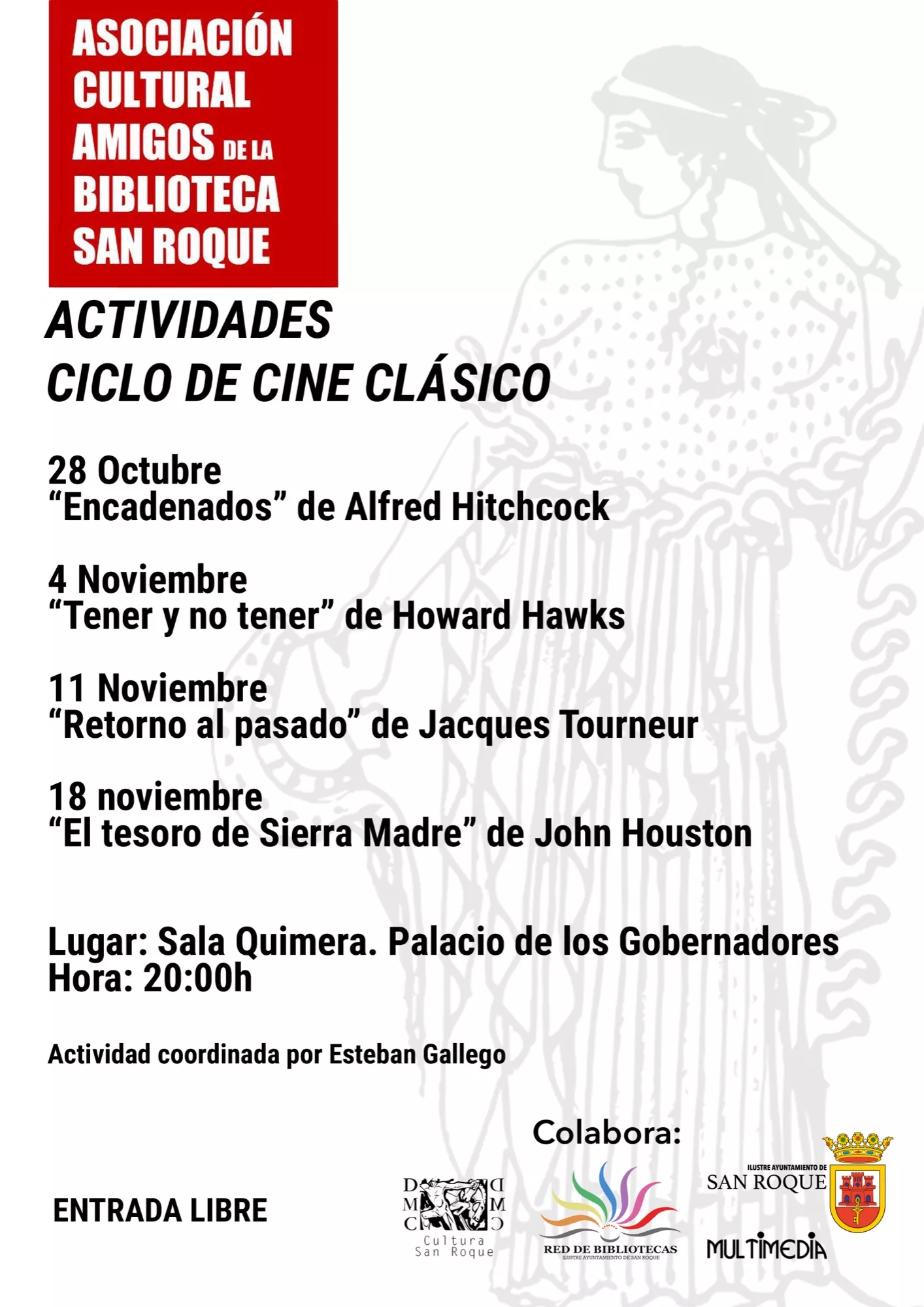 La siguiente película será el 11 de noviembre “Retorno al pasado” de Jacques Tourneur y el ciclo finalizará el día 18 con “El Tesoro de Sierra Madre” de John Houston.
