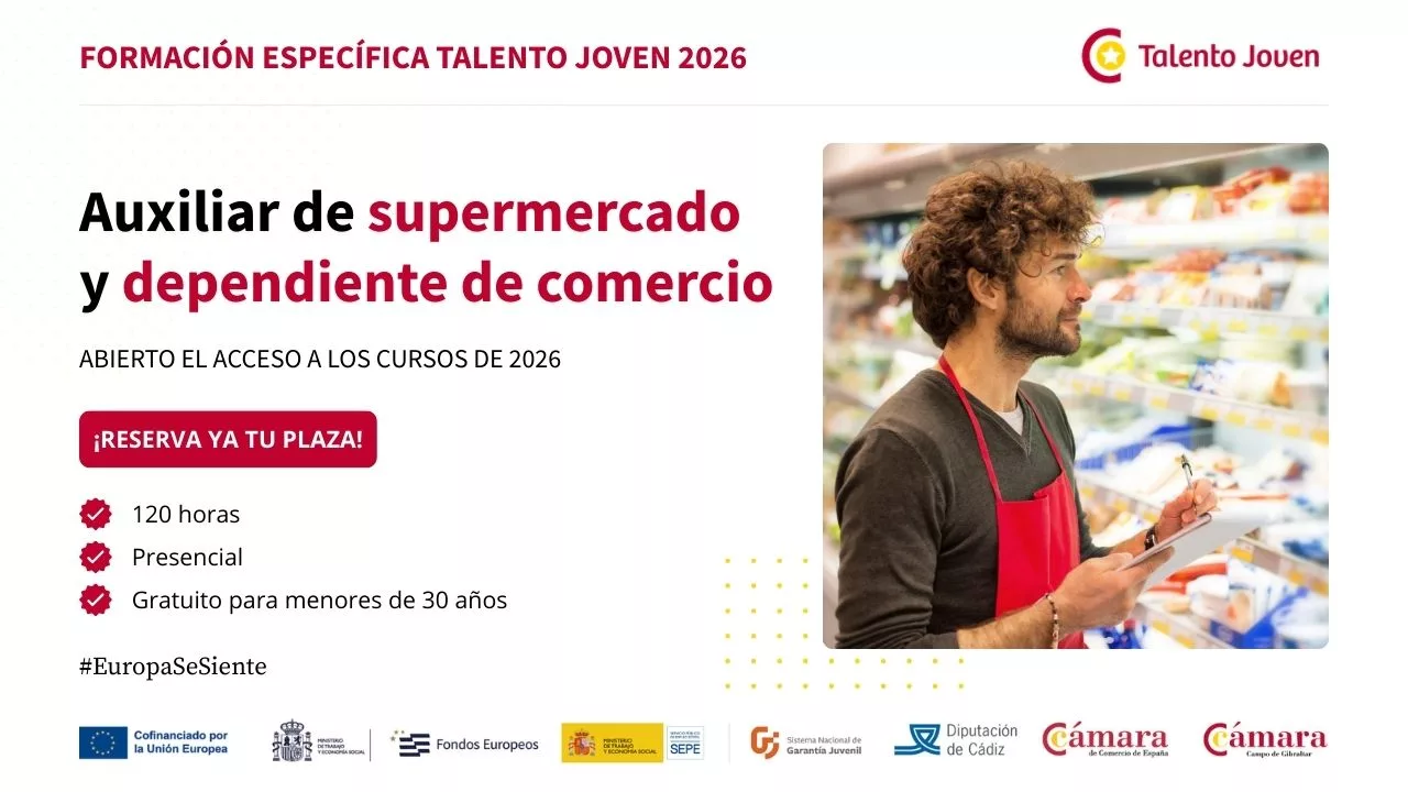El curso de auxiliar de supermercado y dependiente de comercio está destinado a desempleados menores 30 años, que comenzará el 23 de marzo y tiene una duración de 120 horas, impartiéndose de 09 a 14 horas de lunes a viernes.