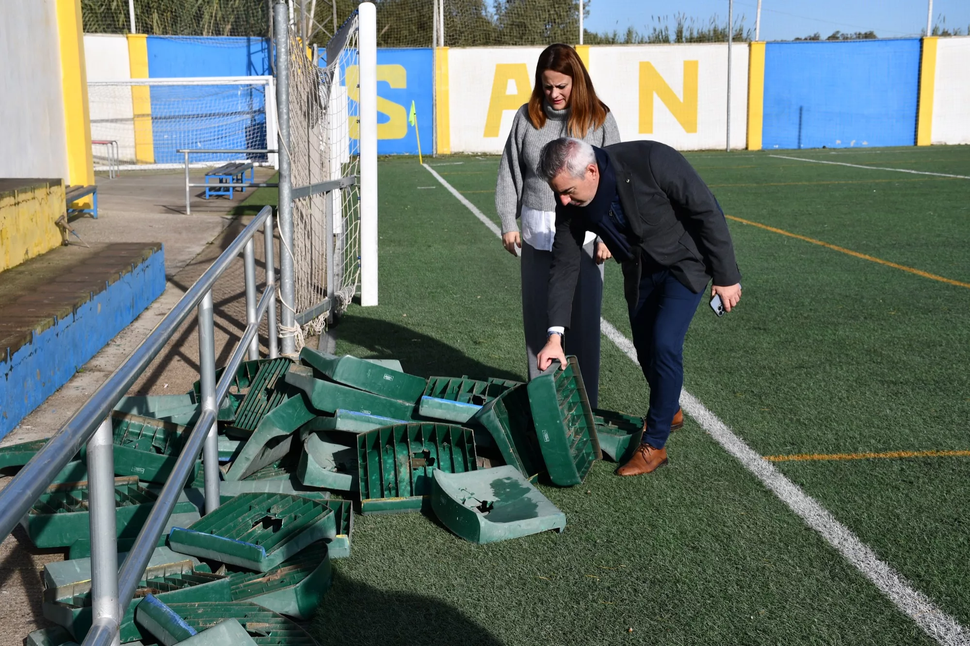 La teniente de alcalde de Deportes, Mónica Córdoba, ha realizado una visita hoy, viernes, al campo municipal Alberto Umbría, de la Estación de San Roque, donde se están cambiando los asientos de las gradas que estaban en mal estado por unos nuevos y de los colores del equipo. En la visita estuvo acompañada del jefe de Servicio de Deportes, Juan Carlos Crespo.