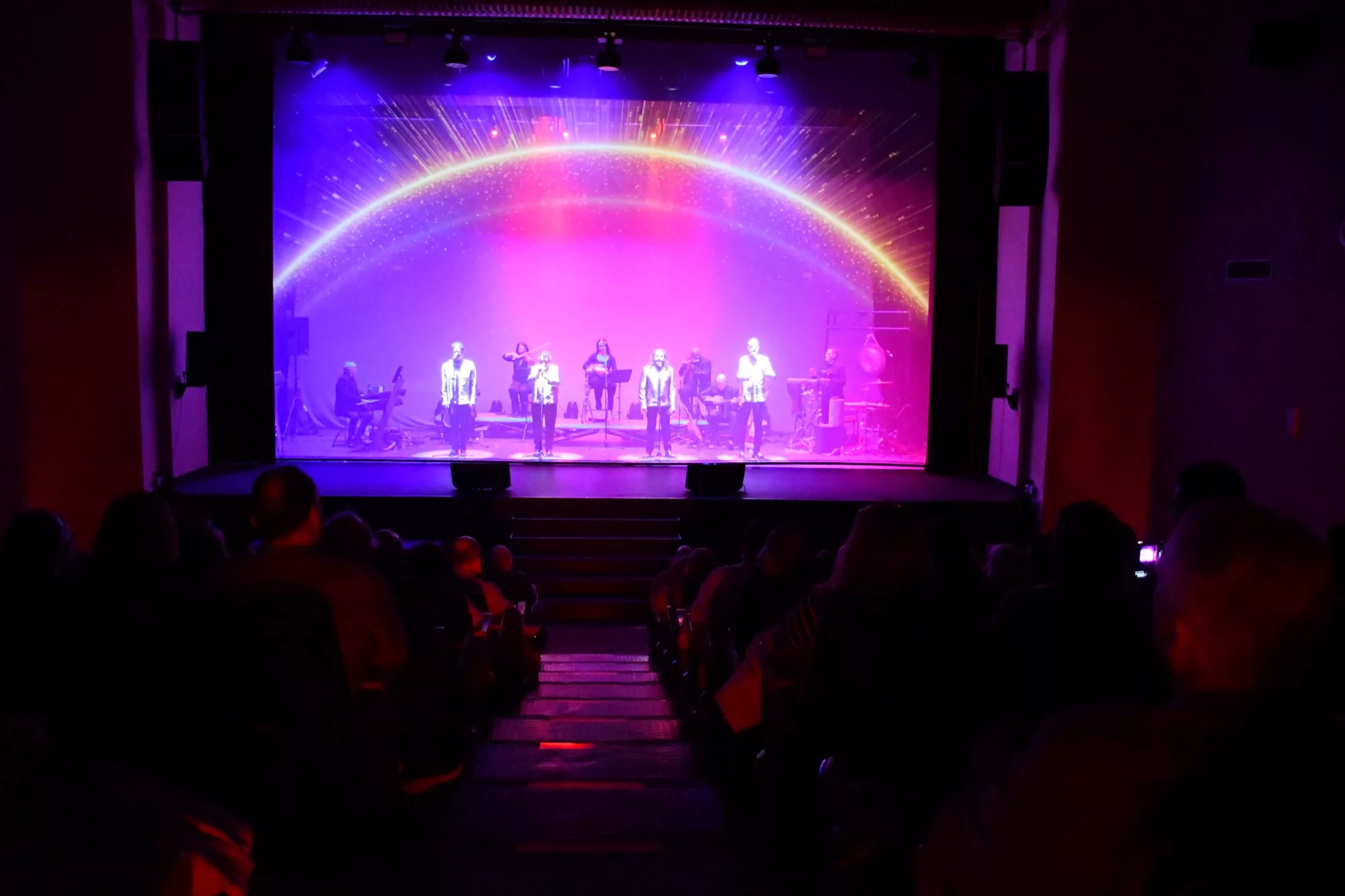 El espectáculo a cargo de Cantores de Híspalis cuenta con un elenco de unas 20 personas entre actores y músicos, además, los espectadores han vivido una experiencia inmersiva gracias al uso de las nuevas tecnologías audiovisuales.