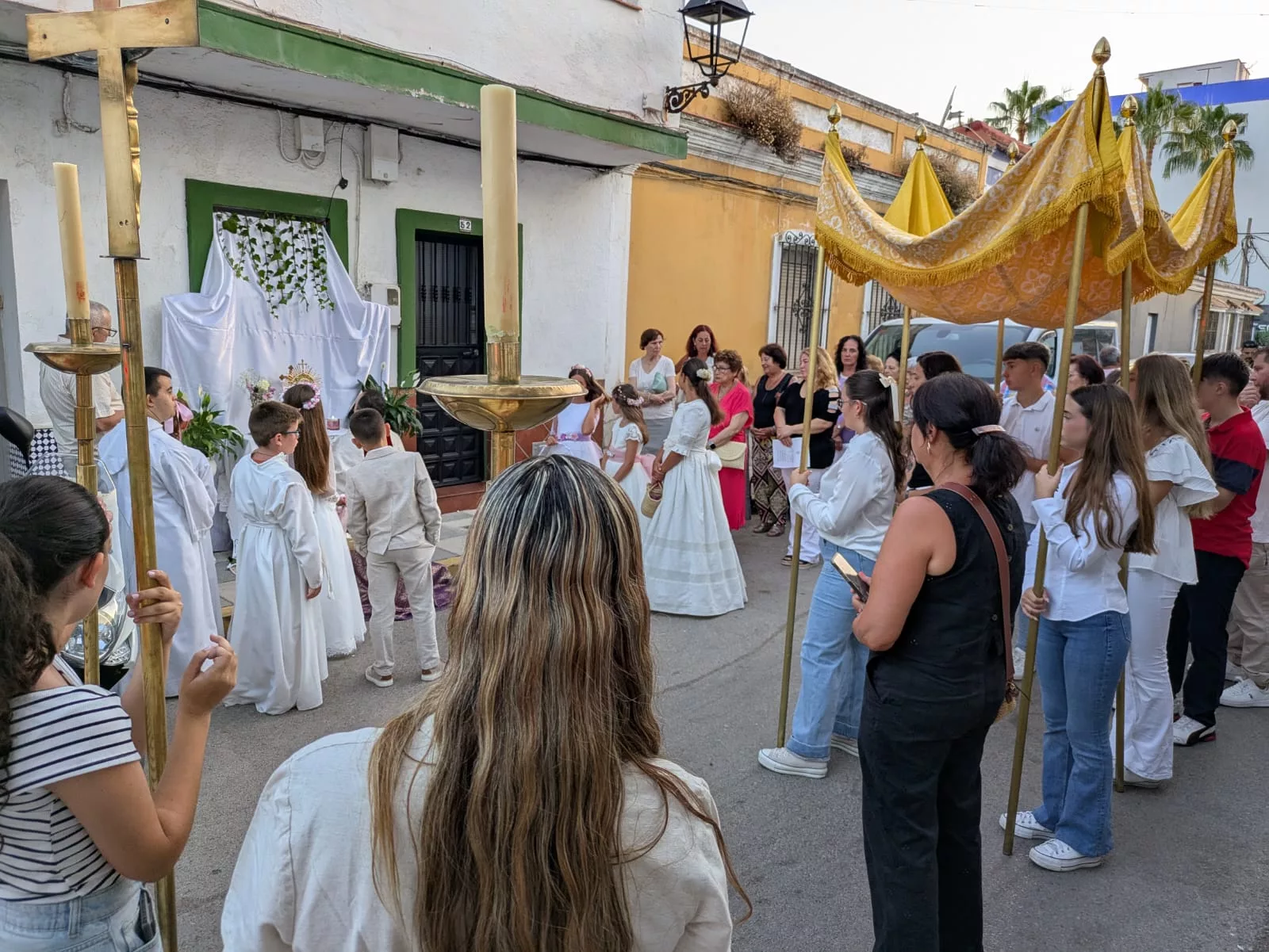 Después de 60 días del Domingo de Resurrección, las misas y procesiones han vuelto este fin de semana a llenar las calles y plazas de buena parte del municipio con motivo de la celebración del Corpus Christi. Actos en los que colabora la Delegación de Tradiciones de San Roque, que dirige la teniente de alcalde María del Mar Collado.