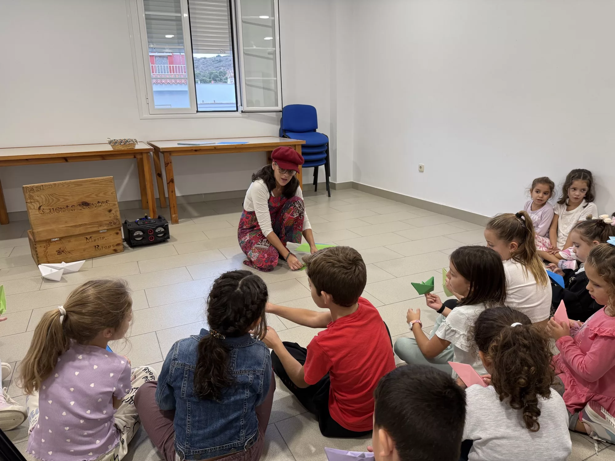 En cuanto a María Rivas, es una divertida narradora que llega de la mano de la tienda La Caléndula, de Algeciras. En esta ocasión, narró a los niños y niñas de la Estación el cuento “El increíble barco del capitán Marco”, protagonizado por Marco, el príncipe del desierto, que un día decide surcar los mares. Los pequeños construyeron sus propios barcos de papel.