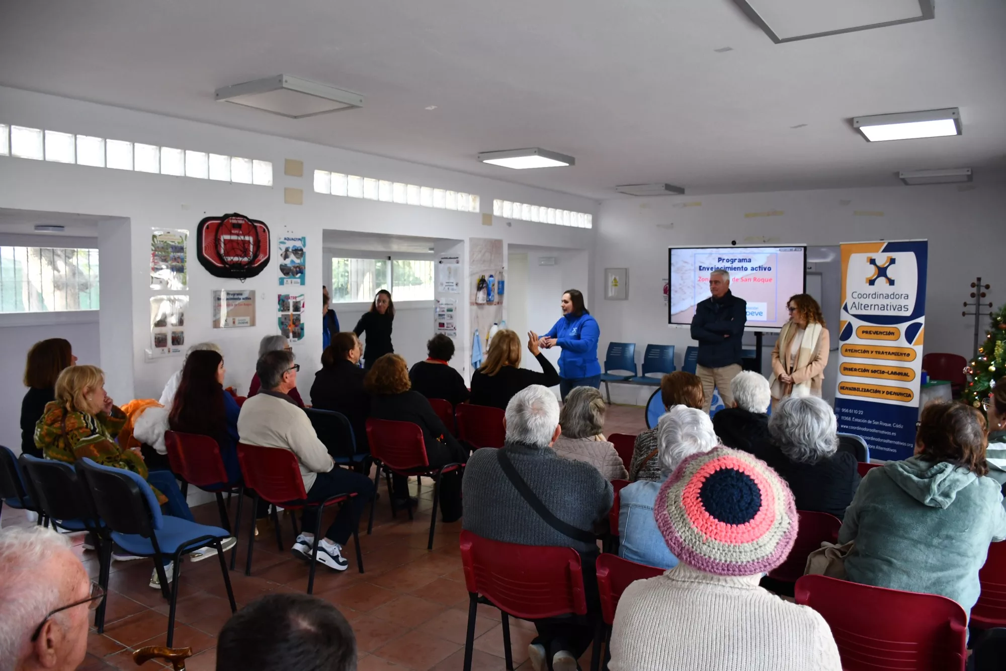 Autoridades municipales, de la Fundación Moeve, y de la Coordinadora Alternativas han asistido a la clausura del programa de Envejecimiento activo, puesto en marcha en Puente Mayorga para mayores del arco de la Bahía.