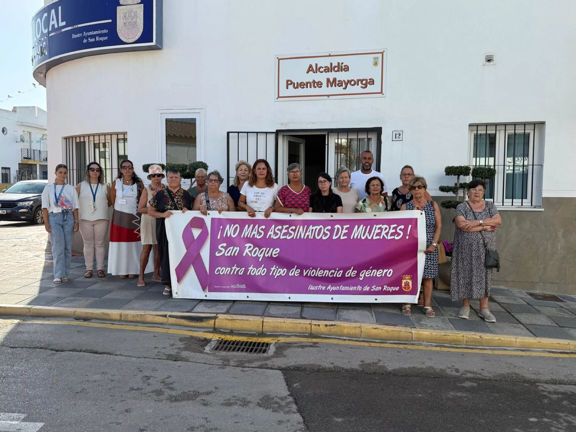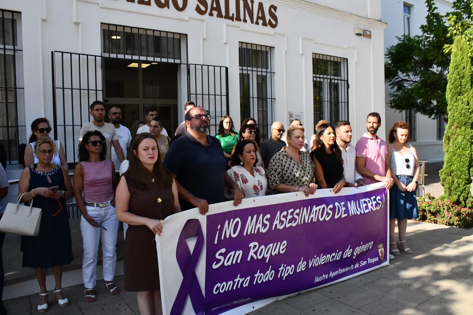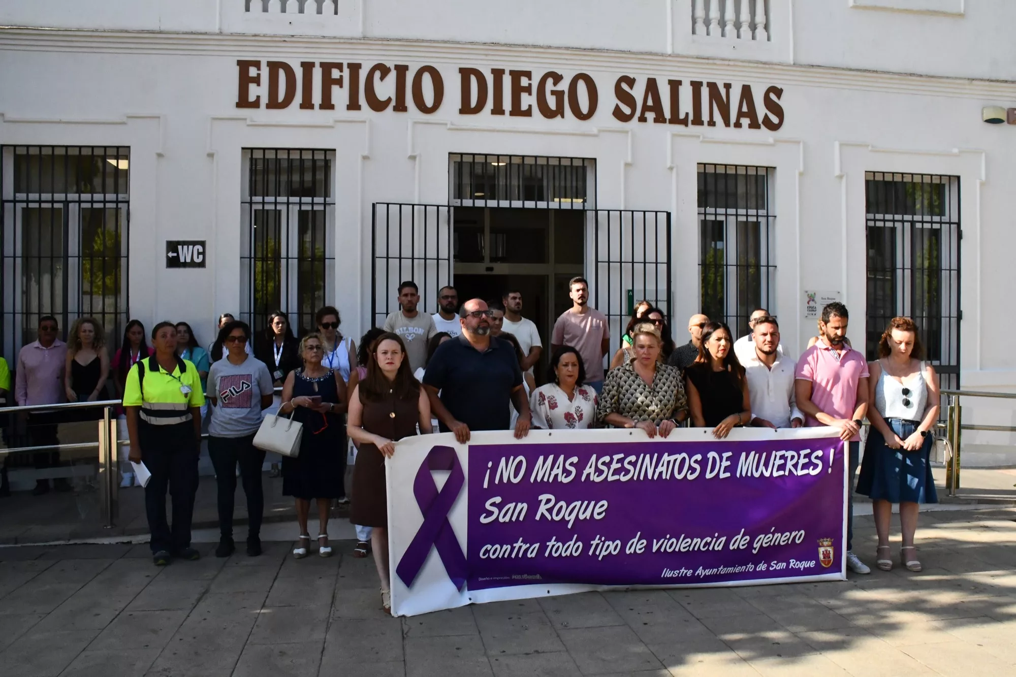 Tras una pancarta con el lema “¡No más asesinatos de mujeres! San Roque contra todo tipo de violencia de género”, en la mañana de este viernes ha tenido lugar frente a la Casa Consistorial una concentración convocada por el Centro de Información de la Mujer (CIM), que encabezaron la alcaldesa accidental, María del Mar Collado, la concejal de Igualdad, Eva Gil, y otros ediles.