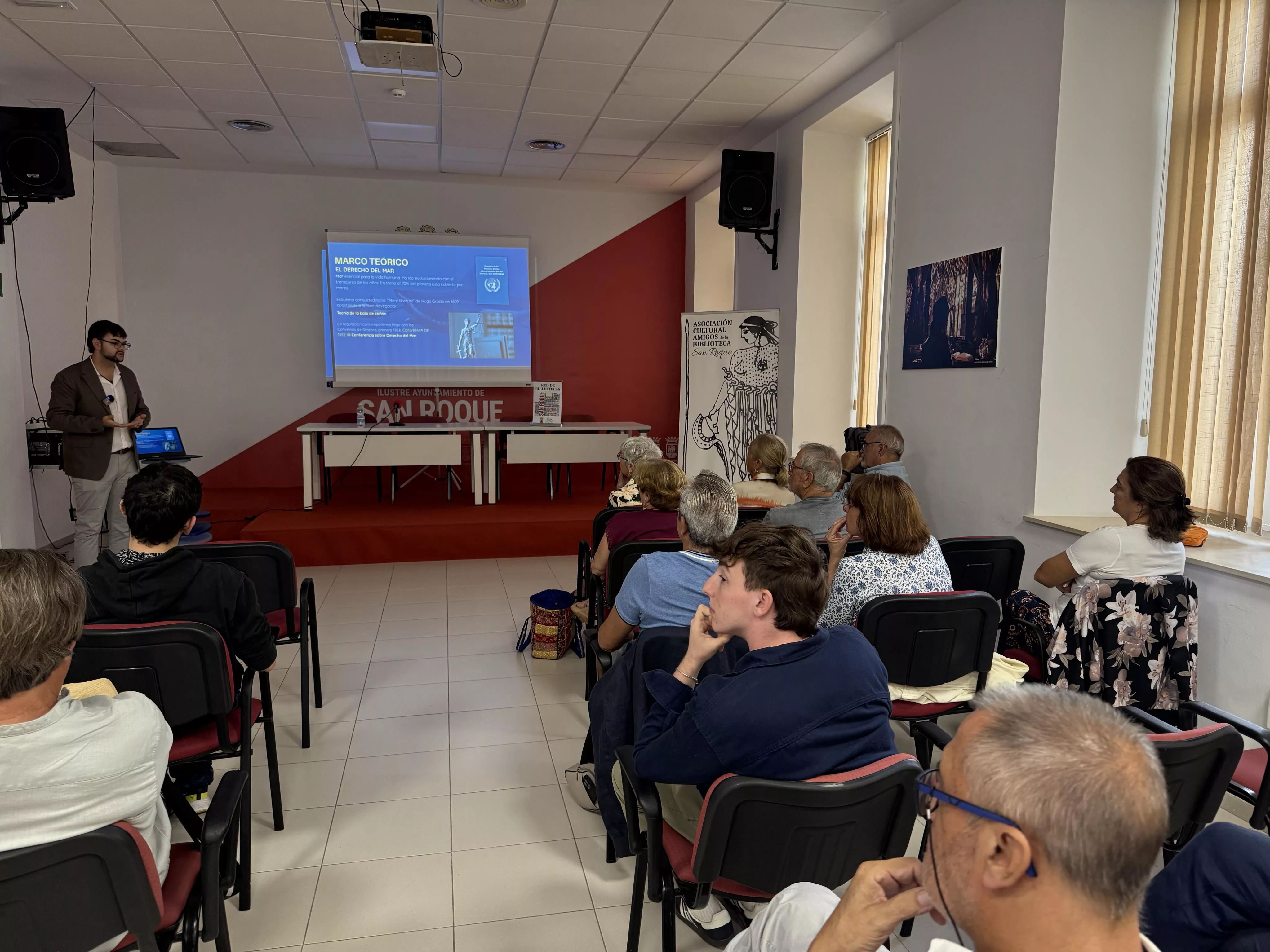 Manuel Jesús Garnica impartió en la tarde del martes 21 de octubre en el salón de actos de la Biblioteca de San Roque una conferencia basada en su trabajo fin de grado titulado “La controversia de la delimitación de los espacios marítimos de Gibraltar y sus consecuencias medioambientales”.