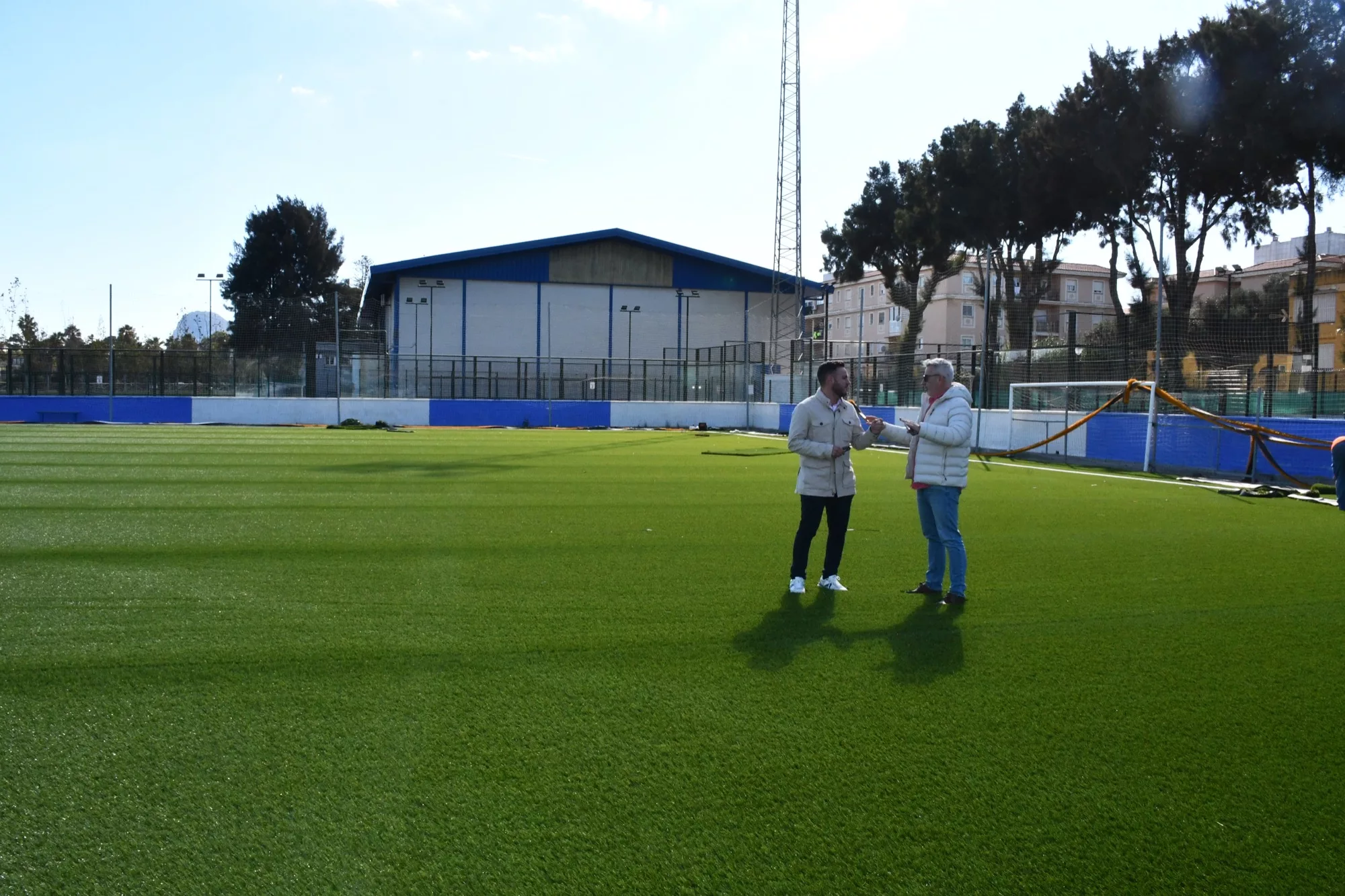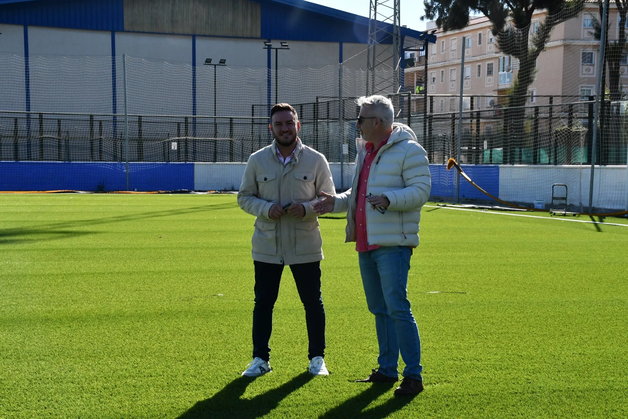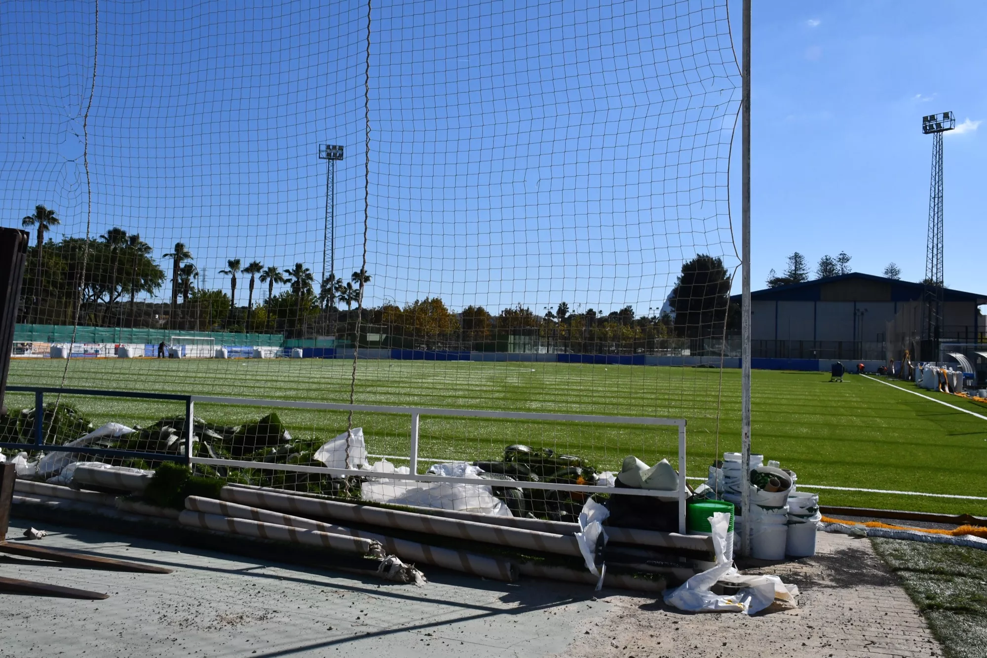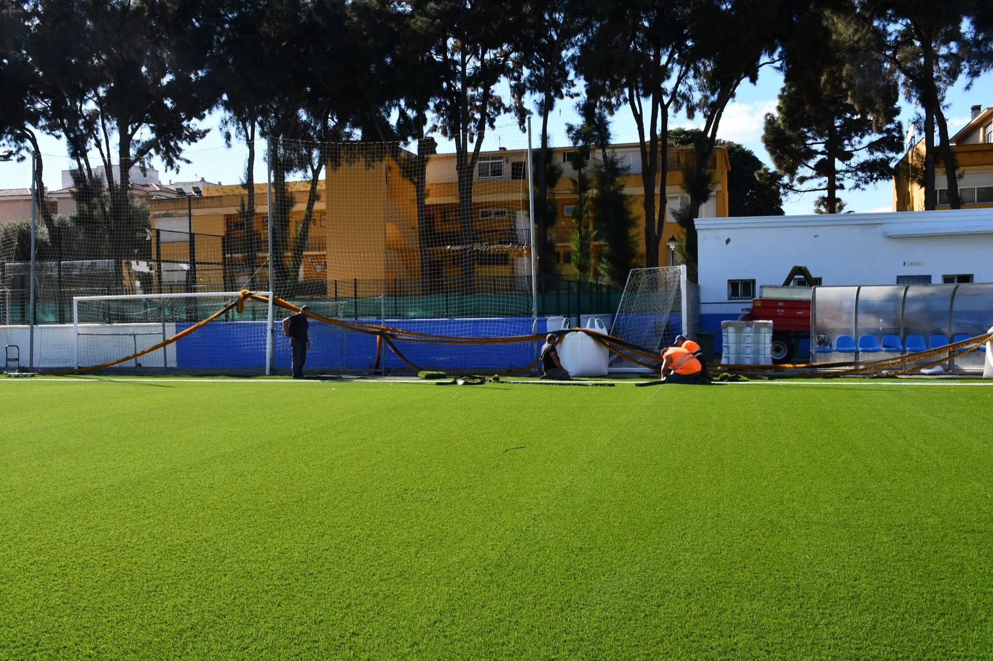 La acción más destacada de estas obras de reparación y mantenimiento de instalaciones deportivas, que comenzaron en el mes de septiembre, consiste en la sustitución de césped artificial del campo de fútbol. Vega explicó que para ello se cuenta con la última tecnología de césped artificial, “donde vamos a seguir también modificando y rehabilitando este campo de fútbol junto con obras interiores e impermeabilización en los vestuarios para que sean de última gama”.