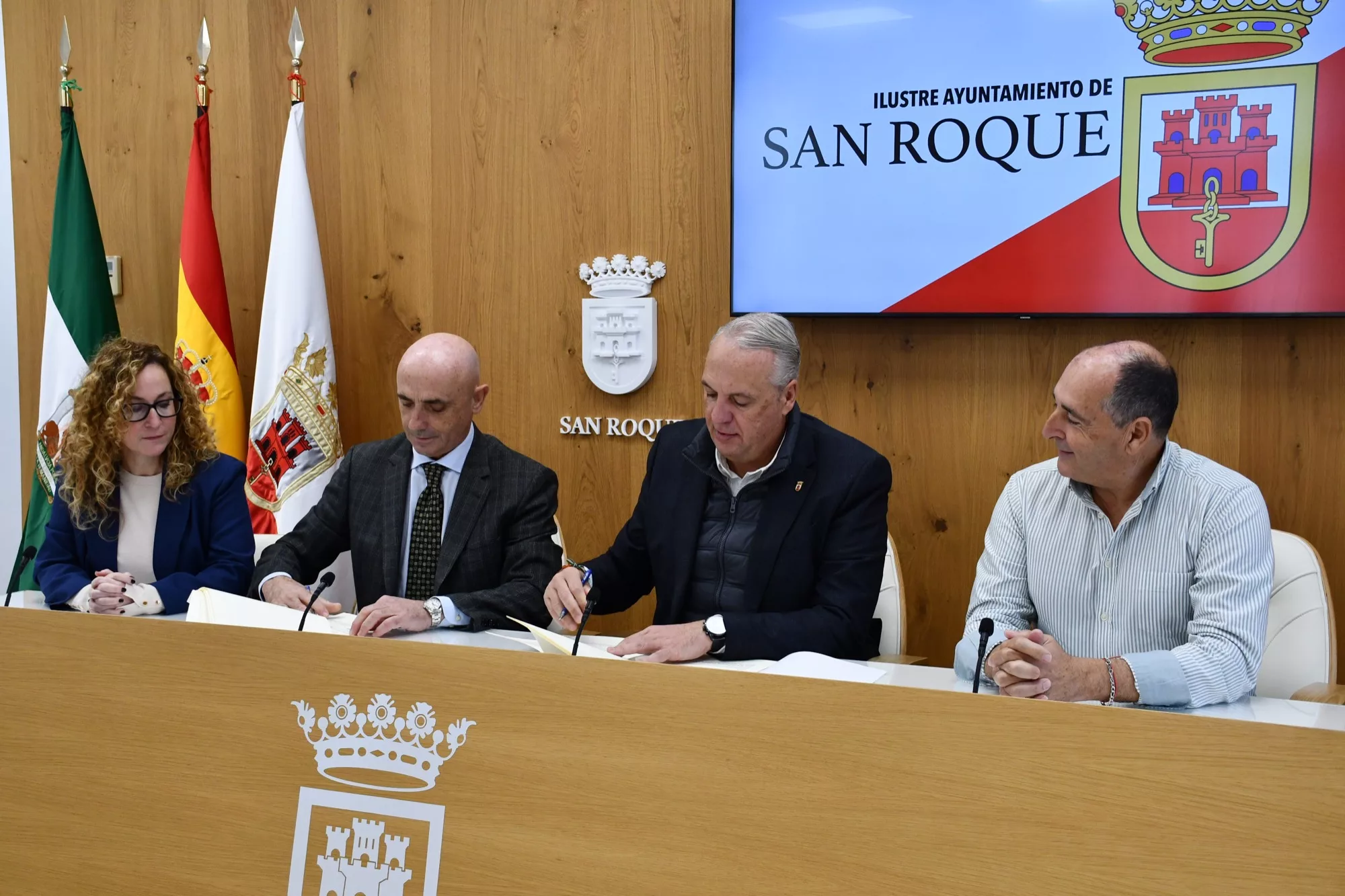 El alcalde, Juan Carlos Ruiz Boix, y el responsable de la Fundación Moeve en Andalucía, Jesús Velasco, han suscrito un convenio de colaboración por el que la citada entidad financiará una serie de mejoras en la Estación Ambiental Madrevieja, que se ejecutarán desde el Ayuntamiento de San Roque. A la firma asistieron también el teniente de alcalde de Medio Ambiente, Juan Serván, y la portavoz de Fundación Moeve en la comarca, Estrella Blanco.