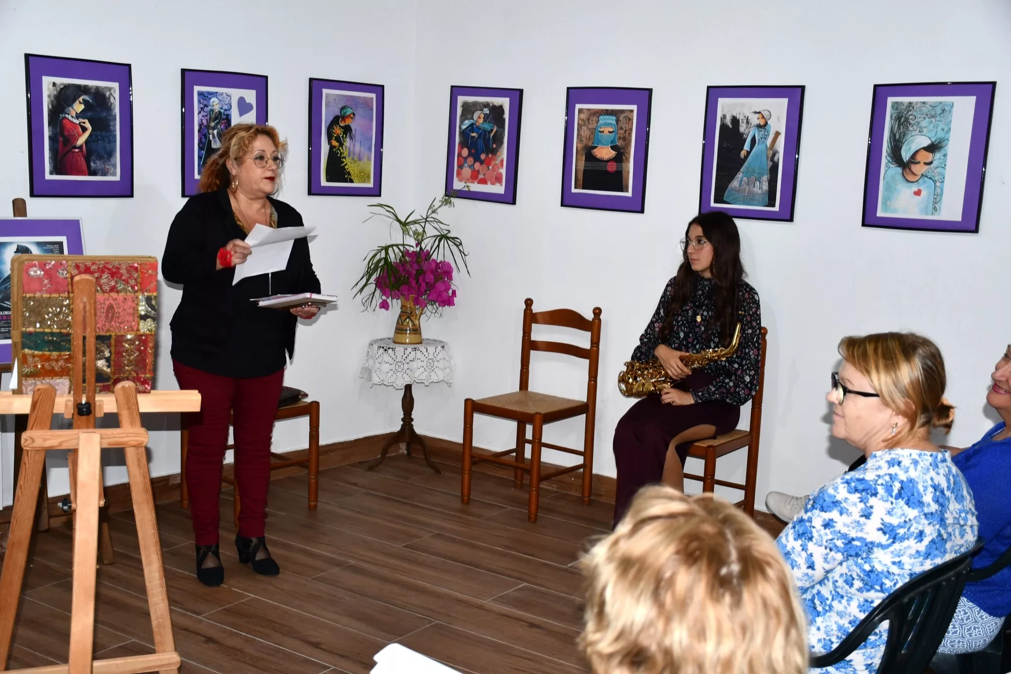 Mercedes Sánchez, por su parte, agradeció a Nuria Ruiz esta idea, y explicó que se había invitado al recital no sólo a autoras y autores del Campo de Gibraltar, sino que podía participar cualquier persona leyendo poemas que no fueran suyos siempre que la temática fuera el empoderamiento de la mujer. Agradeció a Marina Tristancho su aportación musical, y explicó que el acto se complementaba con una exposición que reproduce algunos de los trabajos de una grafitera afgana, quien a lo largo del mundo ha pintado a mujeres que, de distintas maneras, combaten el silencio que se les impone en su país.