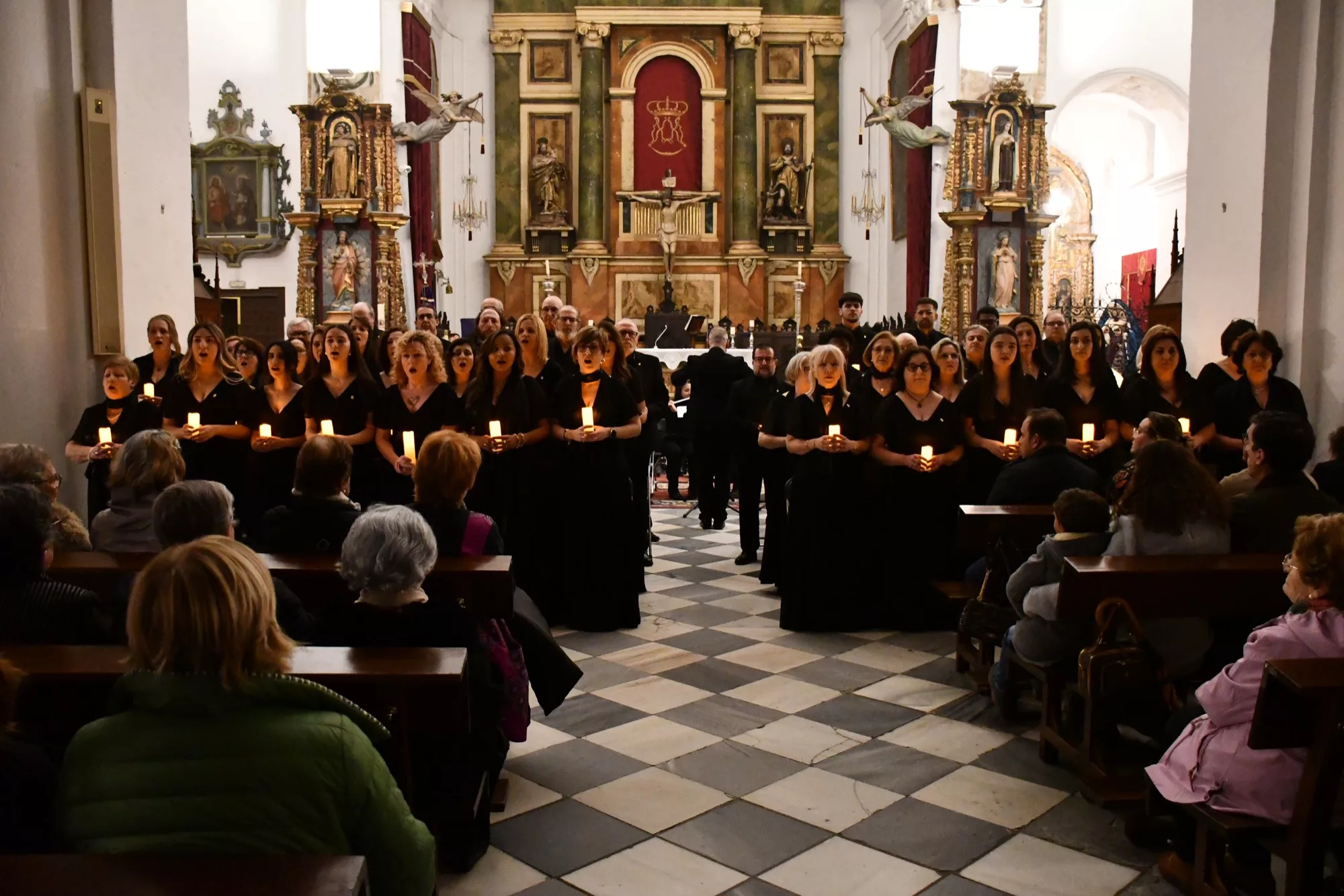 Como ocurrió el año pasado, el público asistente en la noche de este sábado al concierto de Cuaresma “La Pasión Cantada” pudo disfrutar en la Parroquia de Santa María La Coronada de diez marchas procesionales interpretadas por la Banda de Música de Jimena de la Frontera y por las voces de la Coral Polifónica “Portus Albus”.