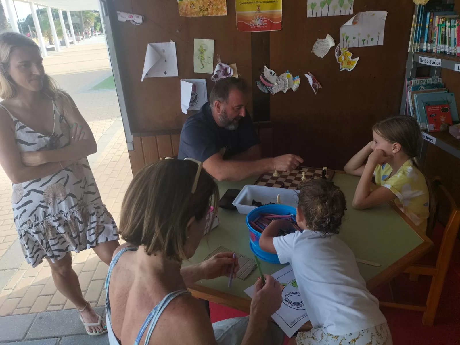 La Delegación de Bibliotecas del Ayuntamiento de San Roque, que dirige la concejal Rocío Fernández, ha montado un verano más en la playa de Torreguadiaro el servicio gratuito de Biblioplaya, un módulo en el que se realizan prestamos de libros. Como cada semana, el pasado sábado por la tarde hubo además actividades de animación lectora pensadas para los más pequeños.