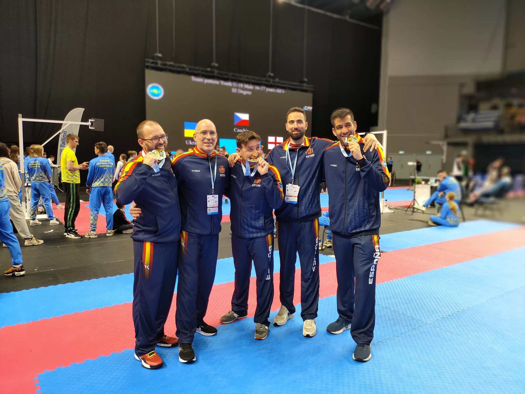 Por su parte, Israel Antequera y Daniel Sánchez, también instructores del Club, demostraron su excelencia al obtener medallas de bronce en Tuls Individual Veterano +45 años, en las categorías VI Dan y II Dan, respectivamente. Sin embargo, su mayor hazaña llegó en la modalidad de equipo: junto al motrileño Manuel Peláez, lideraron al conjunto veterano de Tuls hacia el oro, superando a potencias como Grecia e Inglaterra. “Subir al podio con el equipo fue un momento histórico, un sueño hecho realidad”, expresó Antequera con orgullo. Además, en la categoría de combate por equipos veteranos, Antequera y Sánchez sumaron otro bronce, evidenciando su versatilidad y entrega.