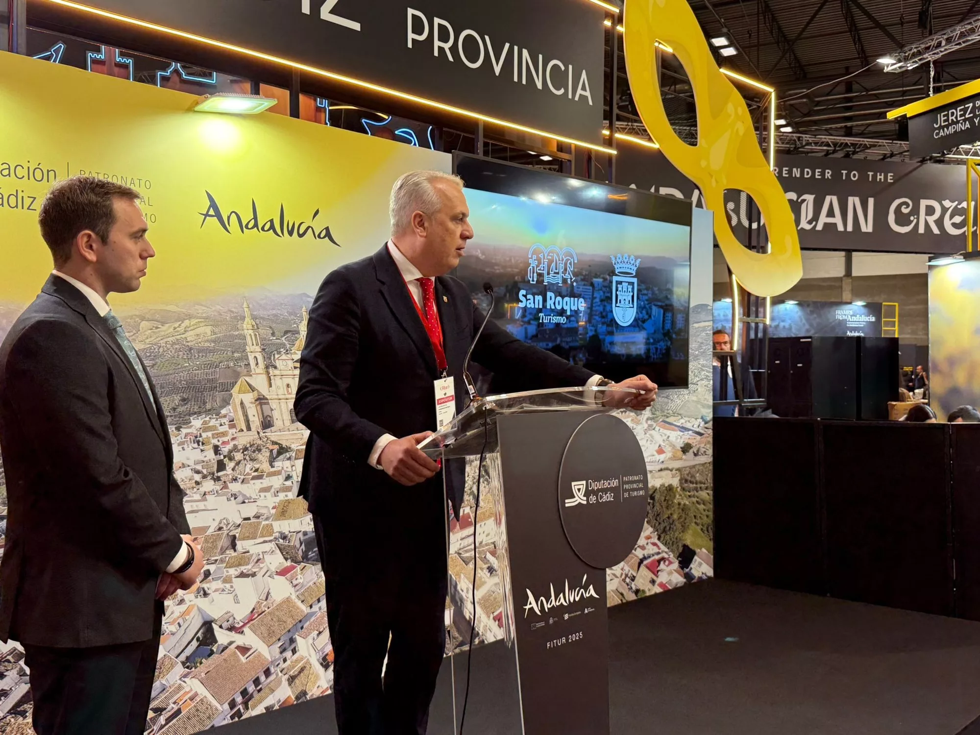 El primer edil y el concejal de Turismo, Alfonso Valdivia, han llevado a cabo este jueves la presentación del vídeo de promoción de San Roque en la Feria Internacional de Turismo de Madrid, Fitur 2025, así como la nueva edición de la Guía de Turismo del municipio. En su discurso, Ruiz Boix anunció la construcción de un nuevo hotel de gran lujo en la zona de Torrecarbonera, conocida también como Alcaidesa-El Faro.