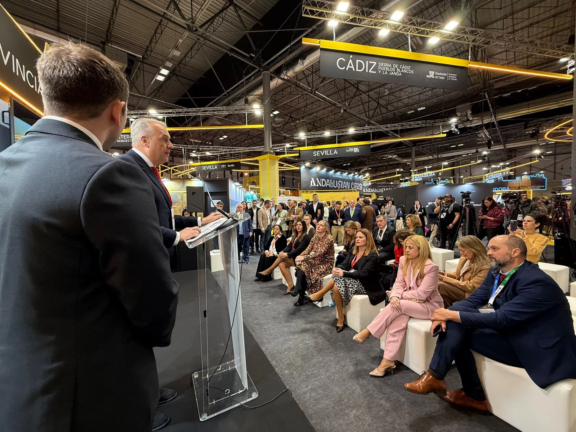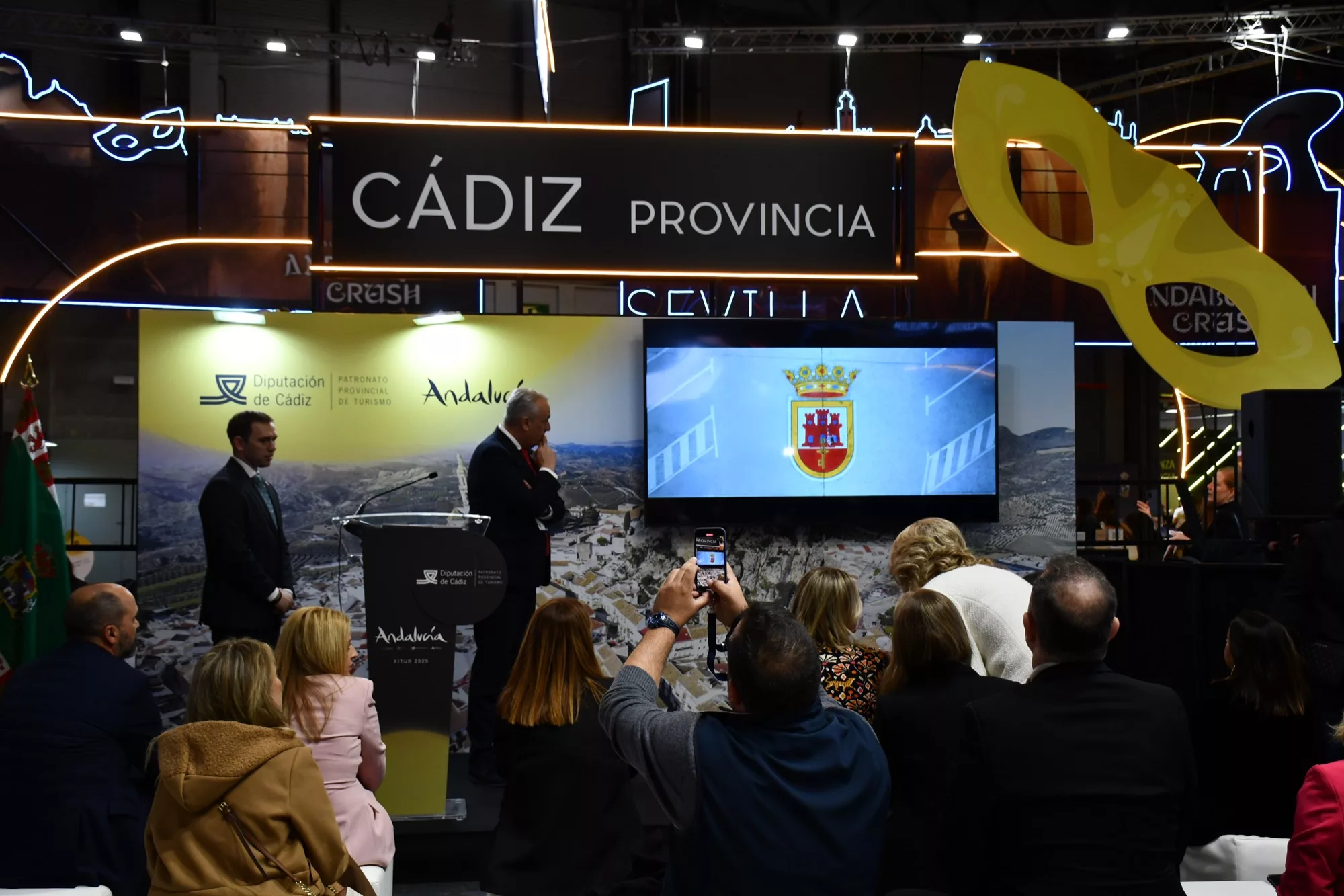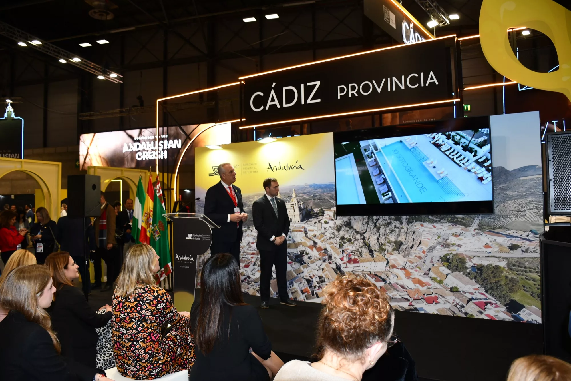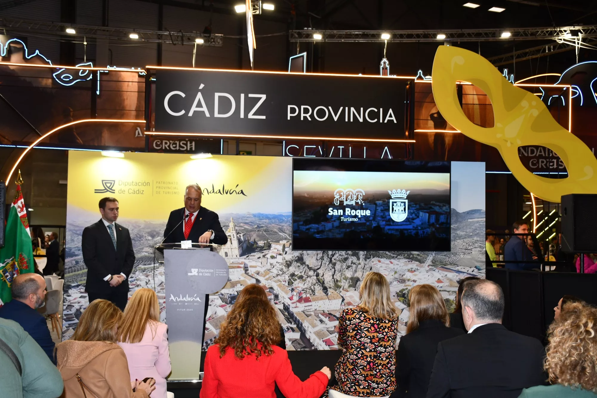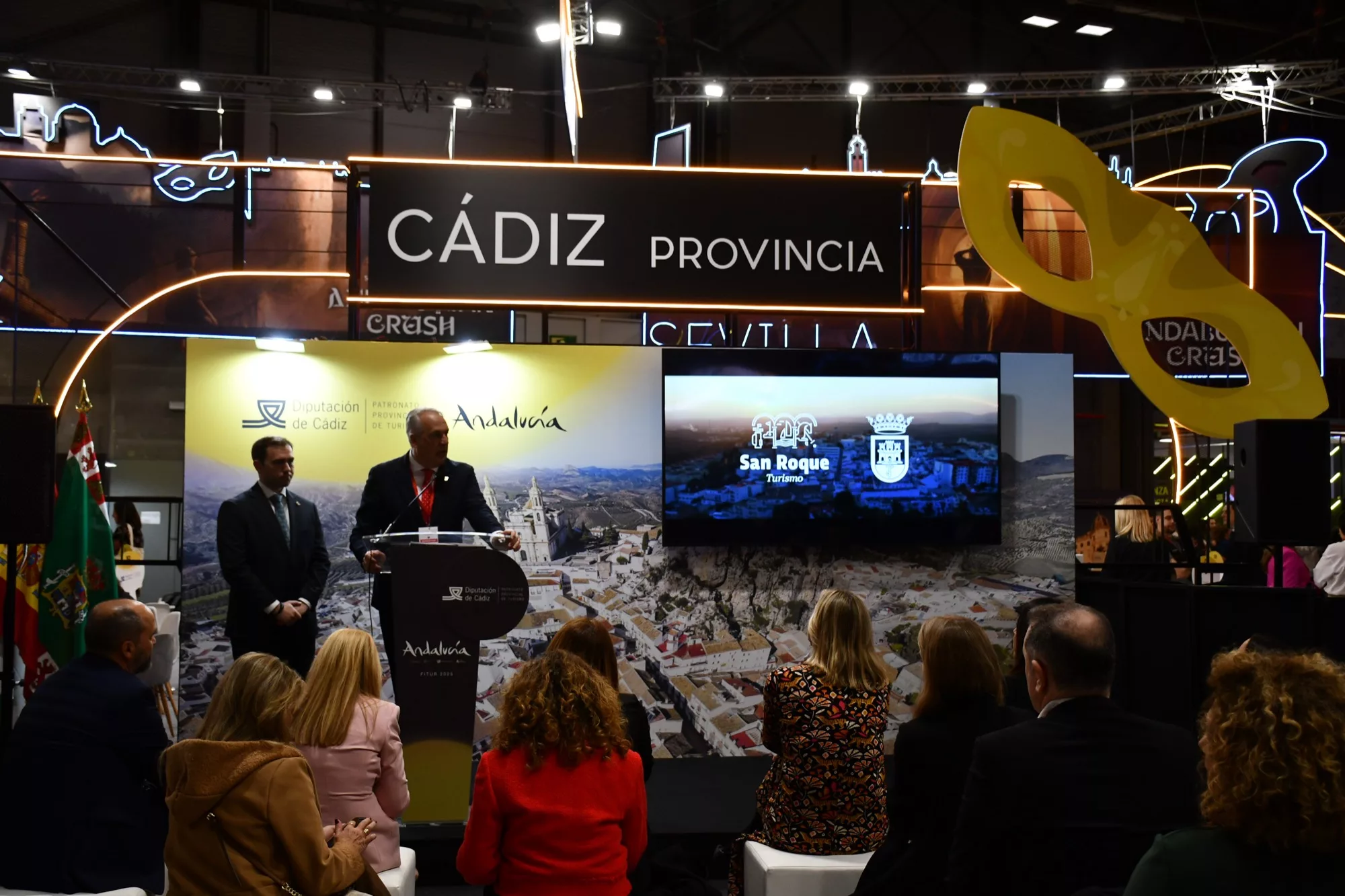 El escenario del stand de la provincia de Cádiz en Fitur 2025 ha acogido este jueves la presentación del nuevo vídeo de promoción de San Roque, así como de la nueva edición de la Guía de Turismo del municipio. En dicho acto, el alcalde, Juan Carlos Ruiz Boix, ha anunciado la construcción de un hotel temático de gran lujo en Torrecarbonera, una inversión de más de 150 millones de euros.