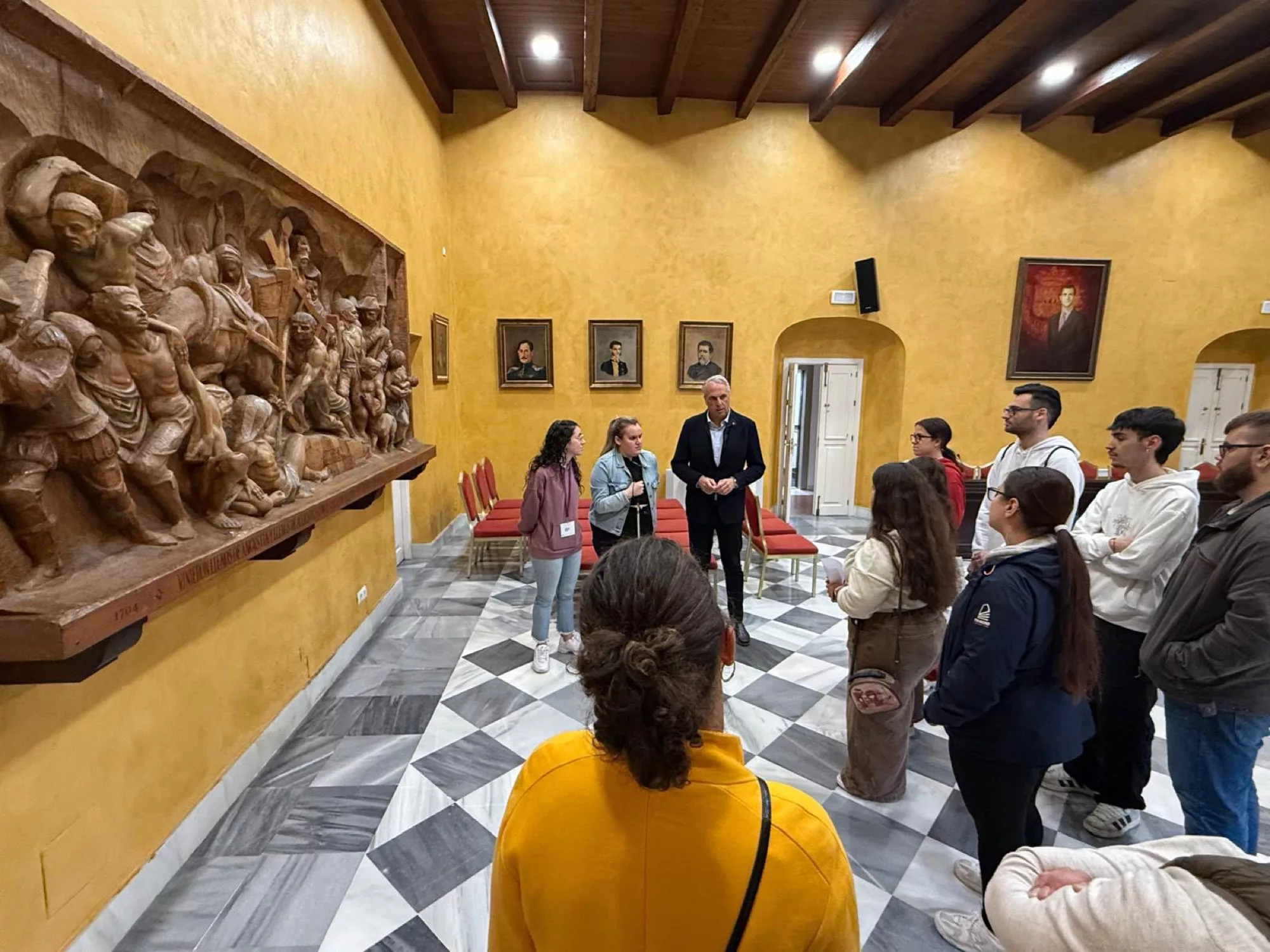 El Palacio de los Gobernadores es uno de los referentes culturales y patrimoniales del municipio de San Roque. Entre sus tesoros se encuentra el friso “El Éxodo”, de Ortega Bru, una obra que ha sido explicada de manera magistral a alumnos de su instituto por la joven sanroqueña Blanca Espinosa, explicación que ha sido alabada por el alcalde.