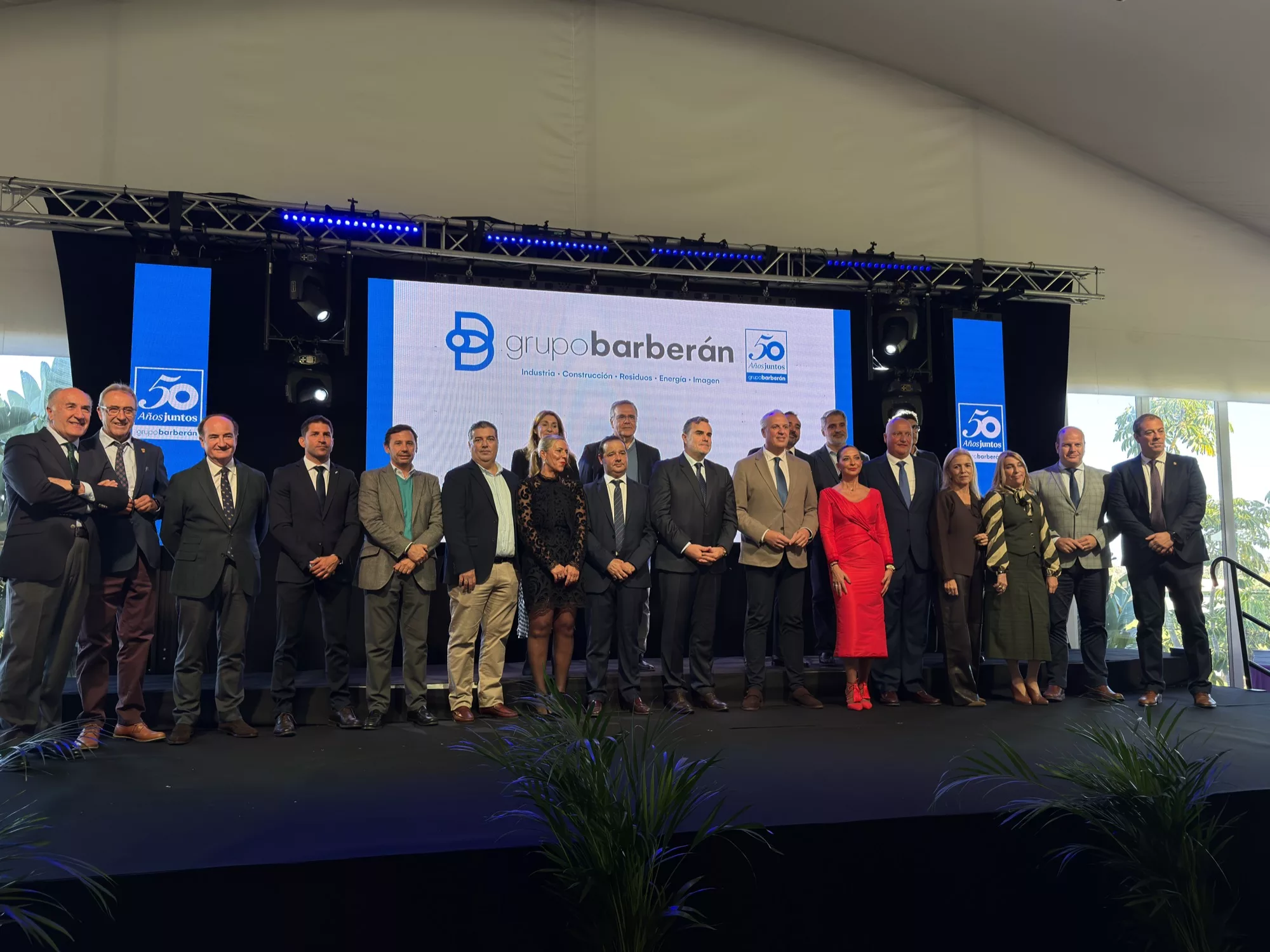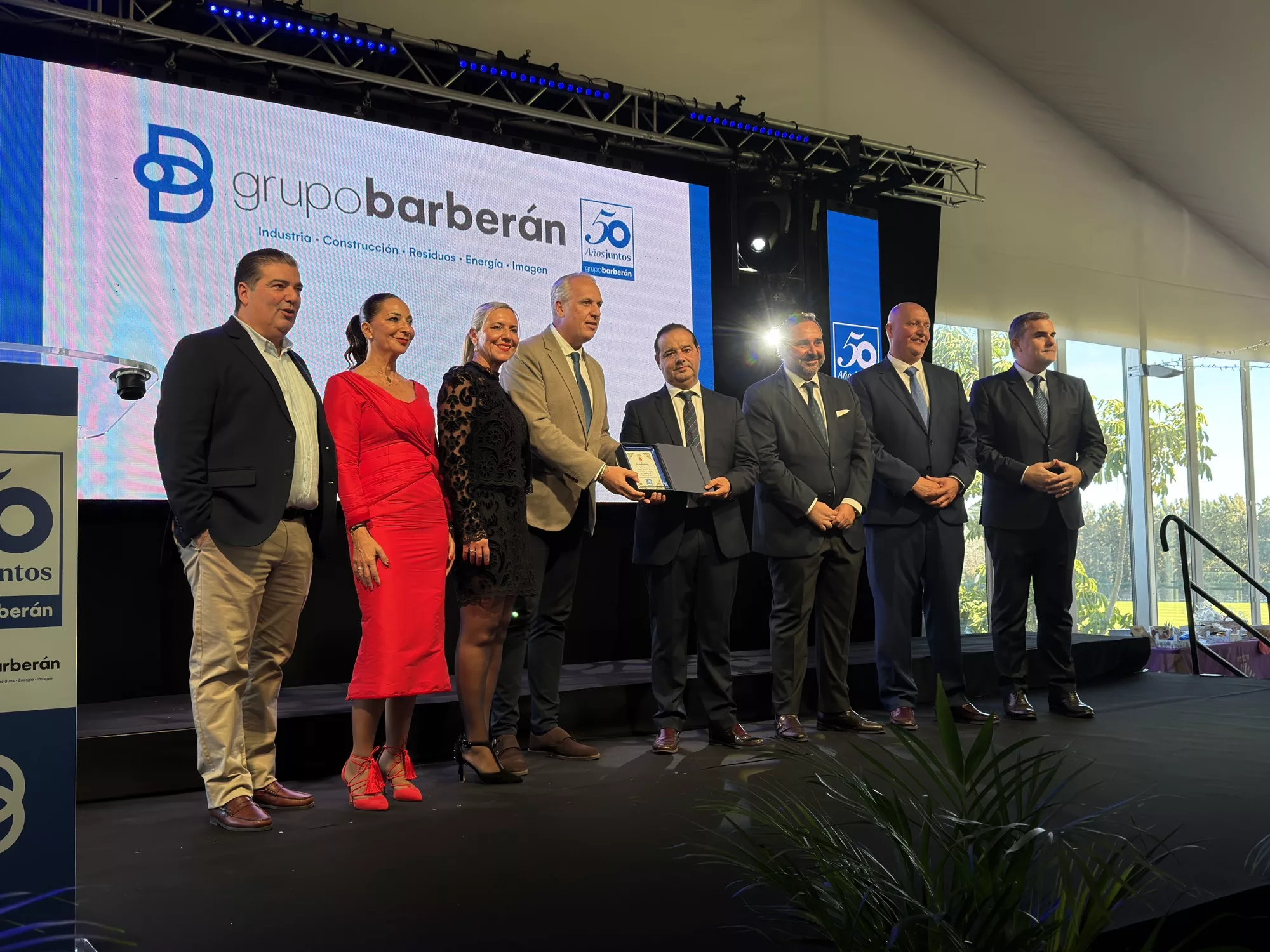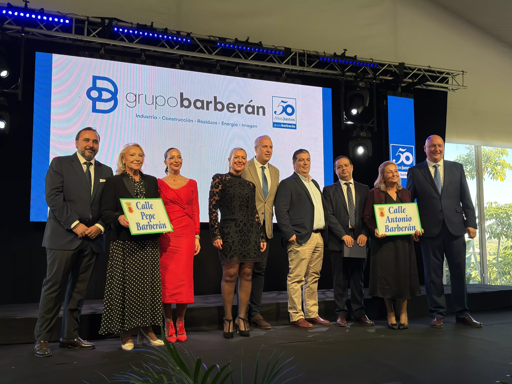 El alcalde de San Roque, Juan Carlos Ruiz Boix, junto a varios ediles de la Corporación Municipal, ha asistido al evento celebrado con motivo de los 50 años de trayectoria de la empresa sanroqueña Grupo Barberán. El primer edil intervino y entregó placas conmemorativas en recuerdo de este acto.