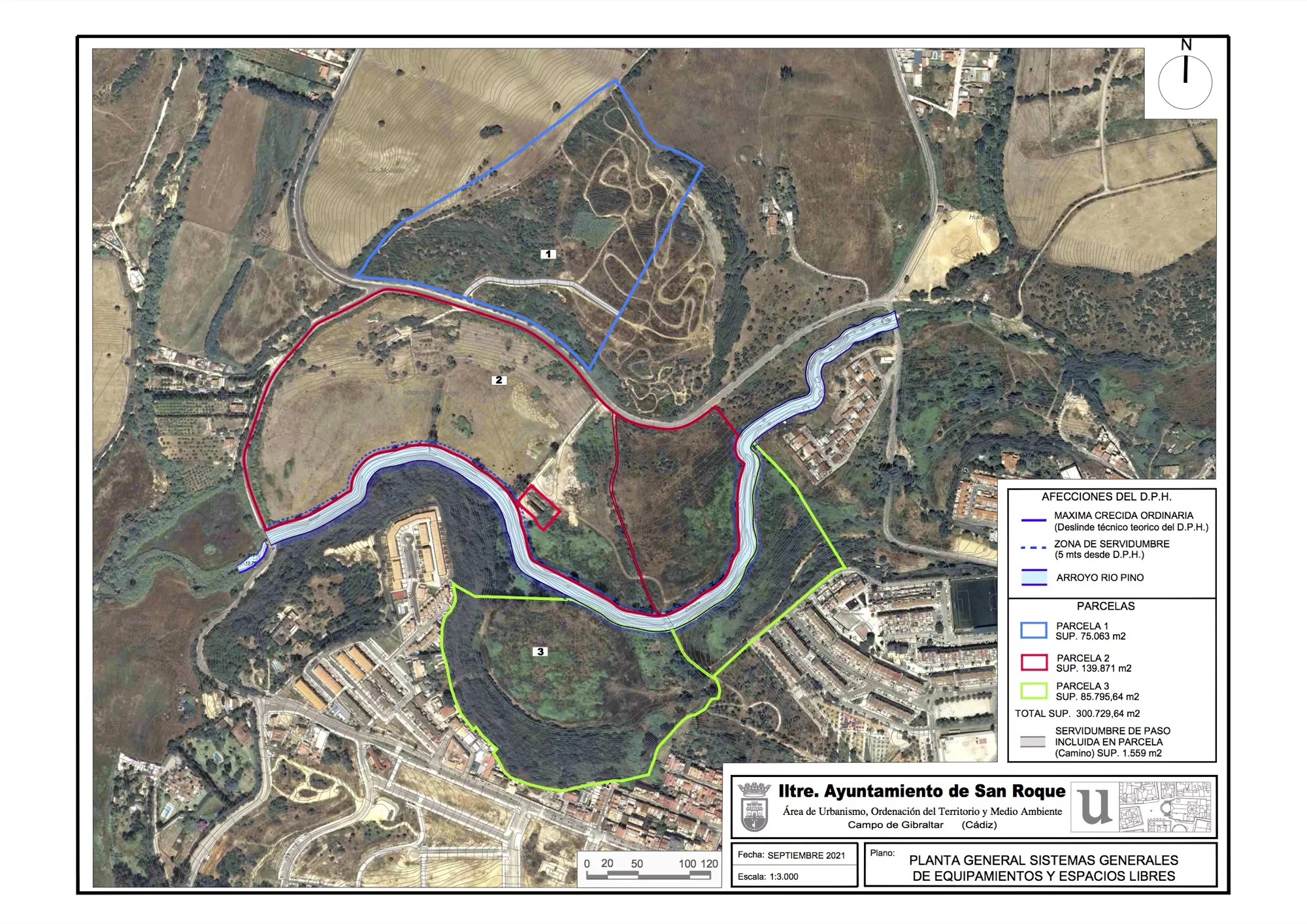 Los terrenos en cuestión se sitúan en el entorno del río Pino y la Huerta del Valenciano, agrupados como “Sistemas Generales de Equipamientos y Espacios Libres”. En concreto, se trata de tres grandes parcelas. La mayor ocupa 13,9 hectáreas, y conecta con la segunda en tamaño, de 8,5 hectáreas, que se sitúa en la zona entre El Almendral y Los Olivillos. Ambas están atravesadas por el río Pino (Arroyo de la Mujer). Al norte y al otro lado de la carretera se encuentra la parcela de menor extensión, de 7,5 hectáreas.