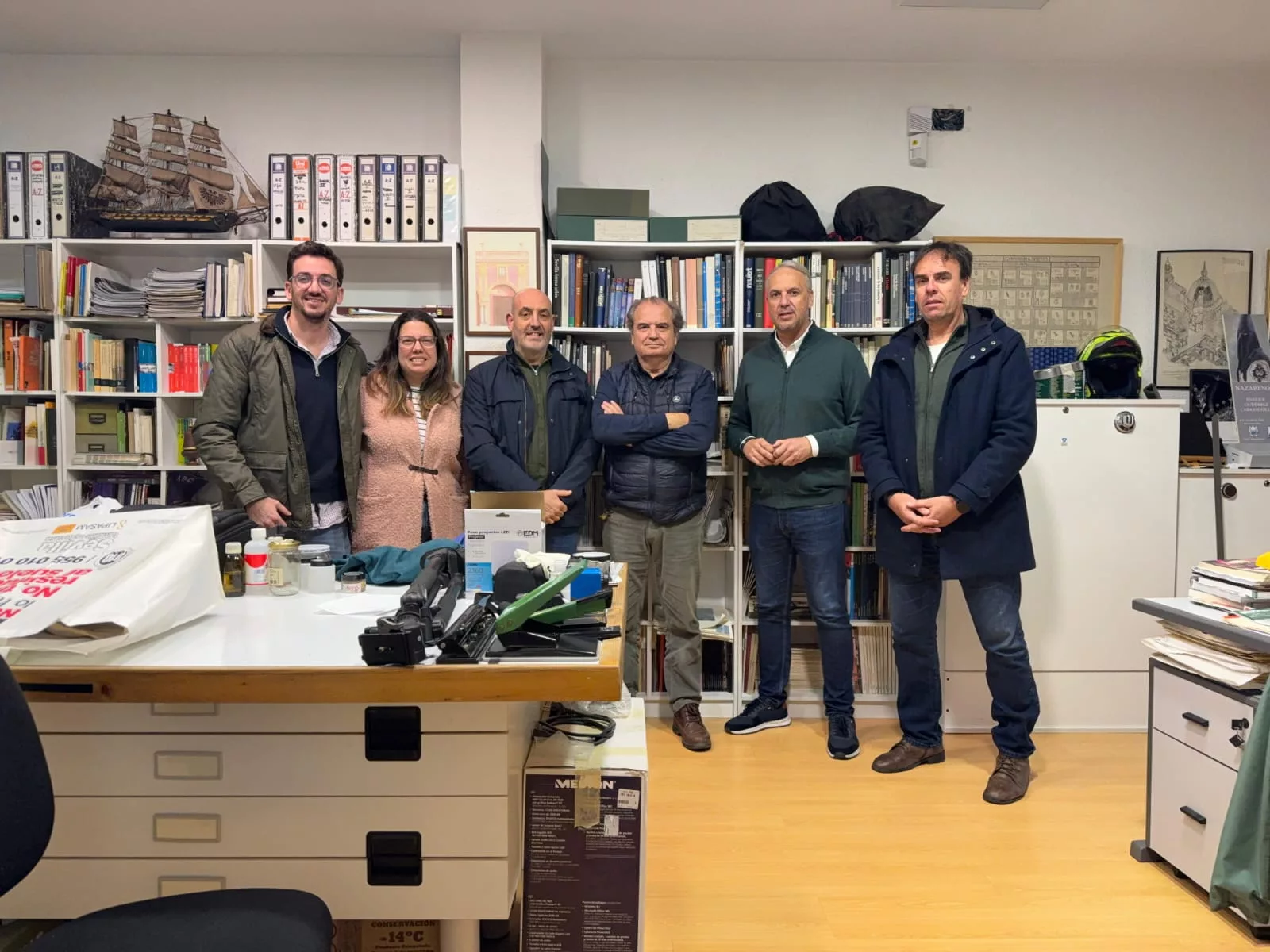 El alcalde de San Roque, Juan Carlos Ruiz Boix, fue invitado por la hermandad a visitar los trabajos de restauración que se están realizando a la imagen del Nazareno de San Roque y ha visitado el taller del imaginero y restaurador Enrique Gutiérrez Carrasquilla, junto a miembros de la hermandad, con su Hermano Mayor, José María Lara, a la cabeza.