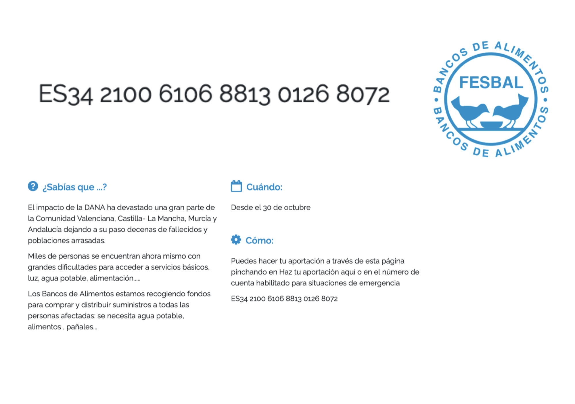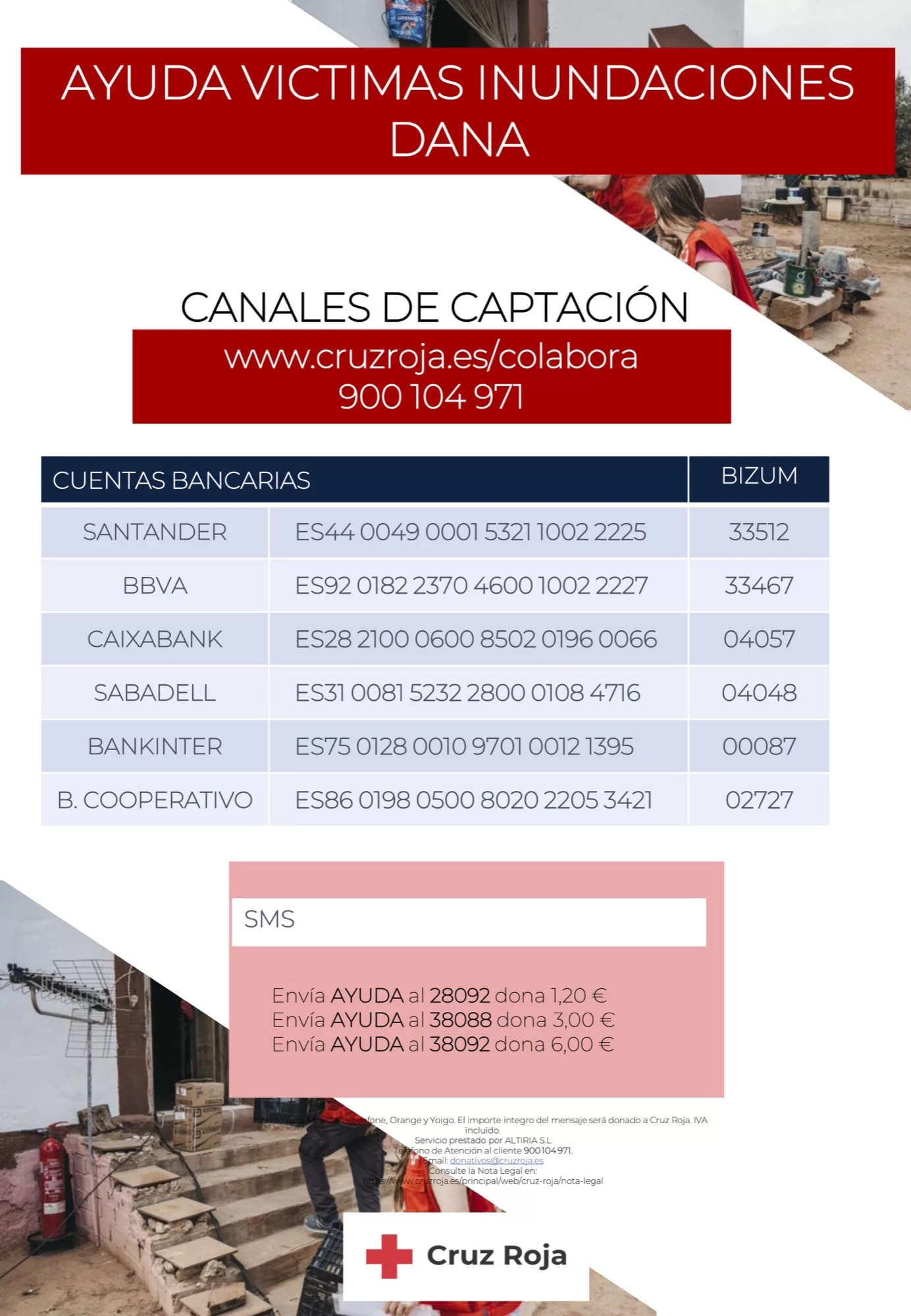 Se apunta además que desde la Federación Valenciana de Municipios y Provincias (FVMP) y desde la Federación Española de Municipios y Provincias (FEMP) se ha pedido a las entidades locales que “dados los problemas de logística y almacenamiento, se prioricen las donaciones económicas” a las entidades que trabajan sobre el terreno.