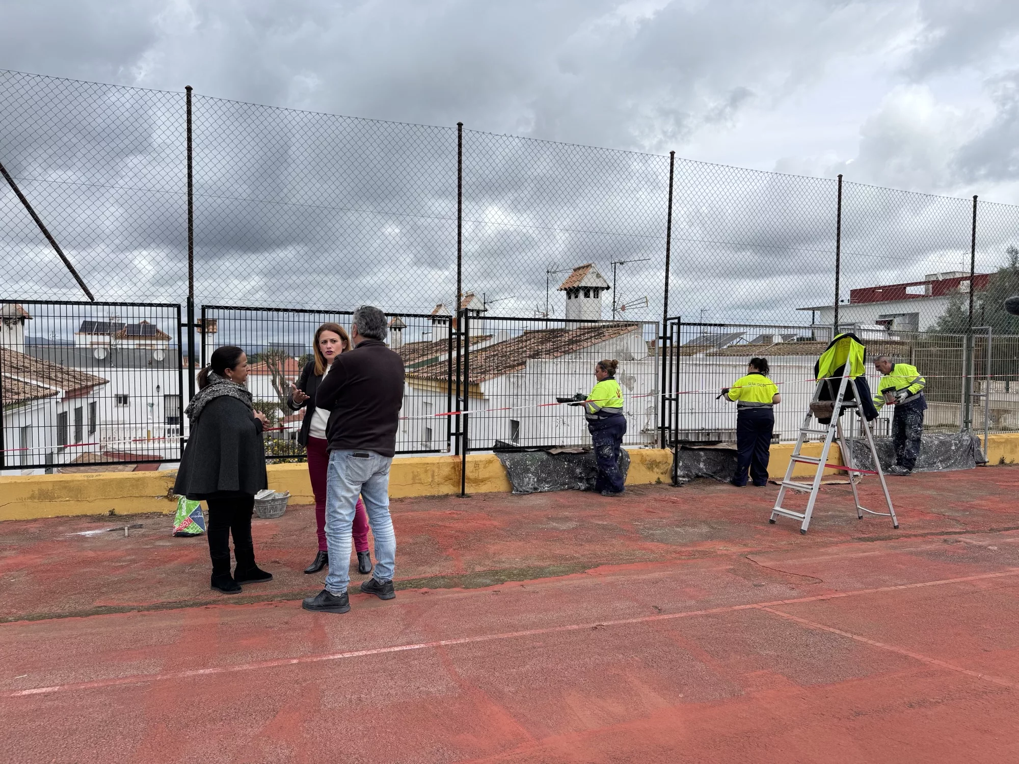 La teniente de alcalde de Educación, Mónica Córdoba, junto a la responsable del casco, María del Mar Collado, han realizado una visita junto a técnicos municipales para comprobar los trabajos que se estaban efectuando en el colegio público Gabriel Arenas, en el casco de San Roque