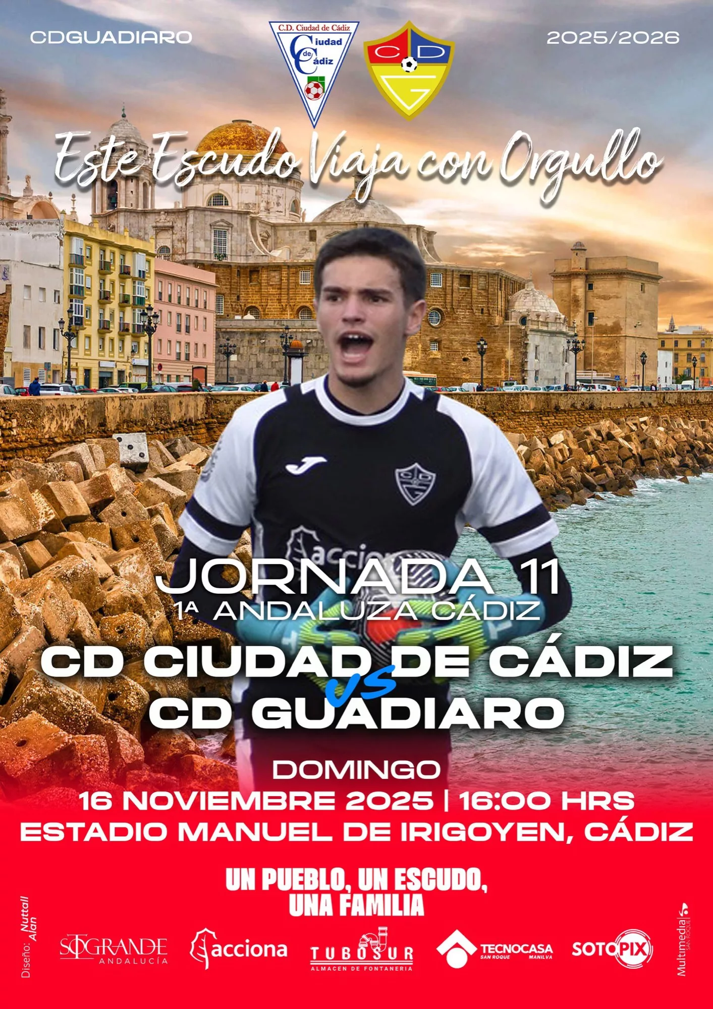 El CD Guadiaro viajará con orgullo este domingo al estadio Manuel Irigoyen, donde a las 16.00 horas será el partido contra el CD Ciudad de Cádiz, correspondiente a la jornada once de Primera Andaluza Cádiz.