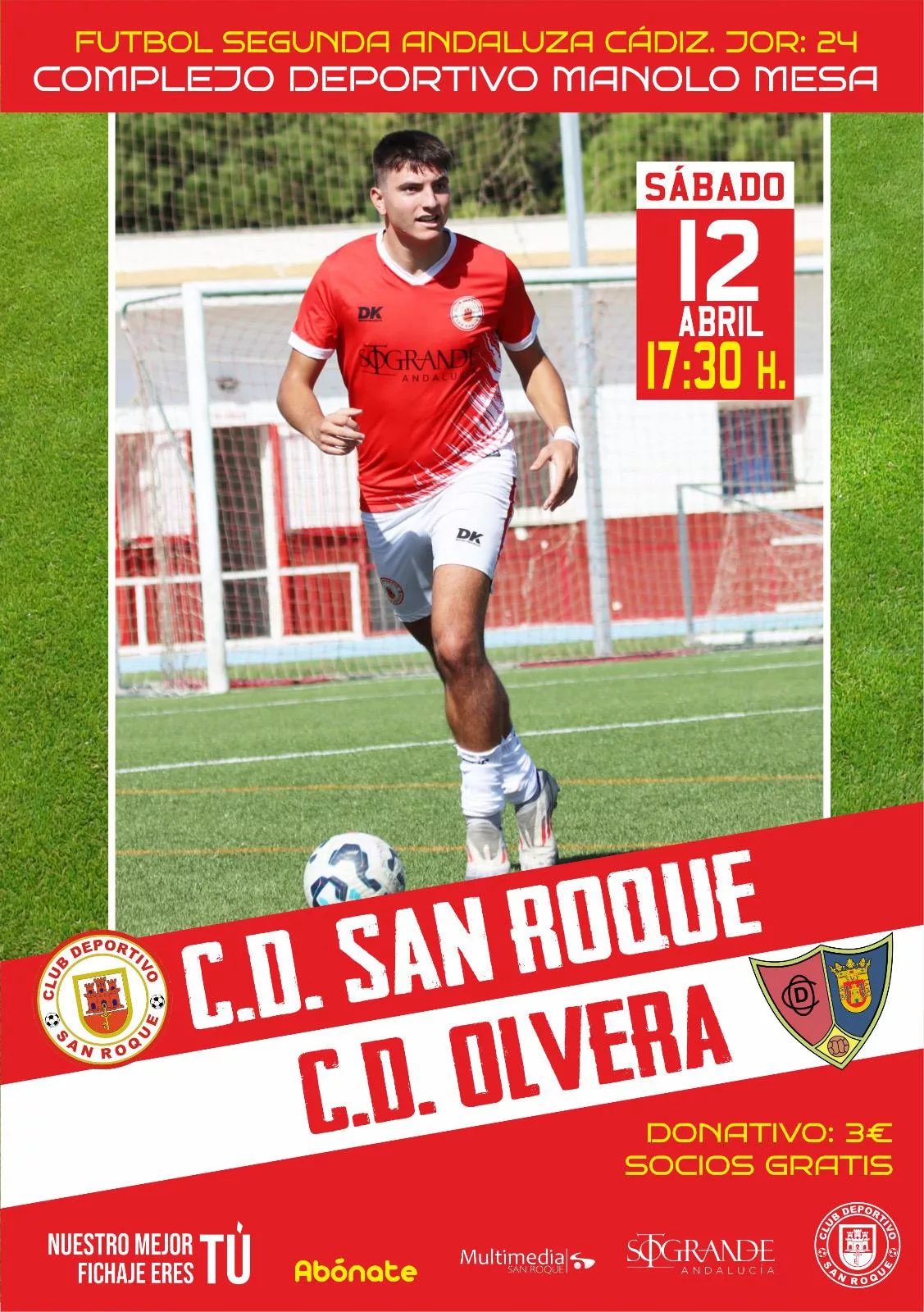 El fútbol regresa este sábado 12 de abril con un enfrentamiento que promete emociones fuertes. A partir de las 17.30 horas, el Municipal Manolo Mesa acogerá un choque crucial entre el CD San Roque y el CD Olvera, correspondiente a la jornada 24 de la Segunda Andaluza gaditana. Este partido, que quedó pendiente en el calendario, llega en un momento determinante de la temporada, con ambos equipos inmersos en objetivos ambiciosos y dispuestos a darlo todo sobre el césped.