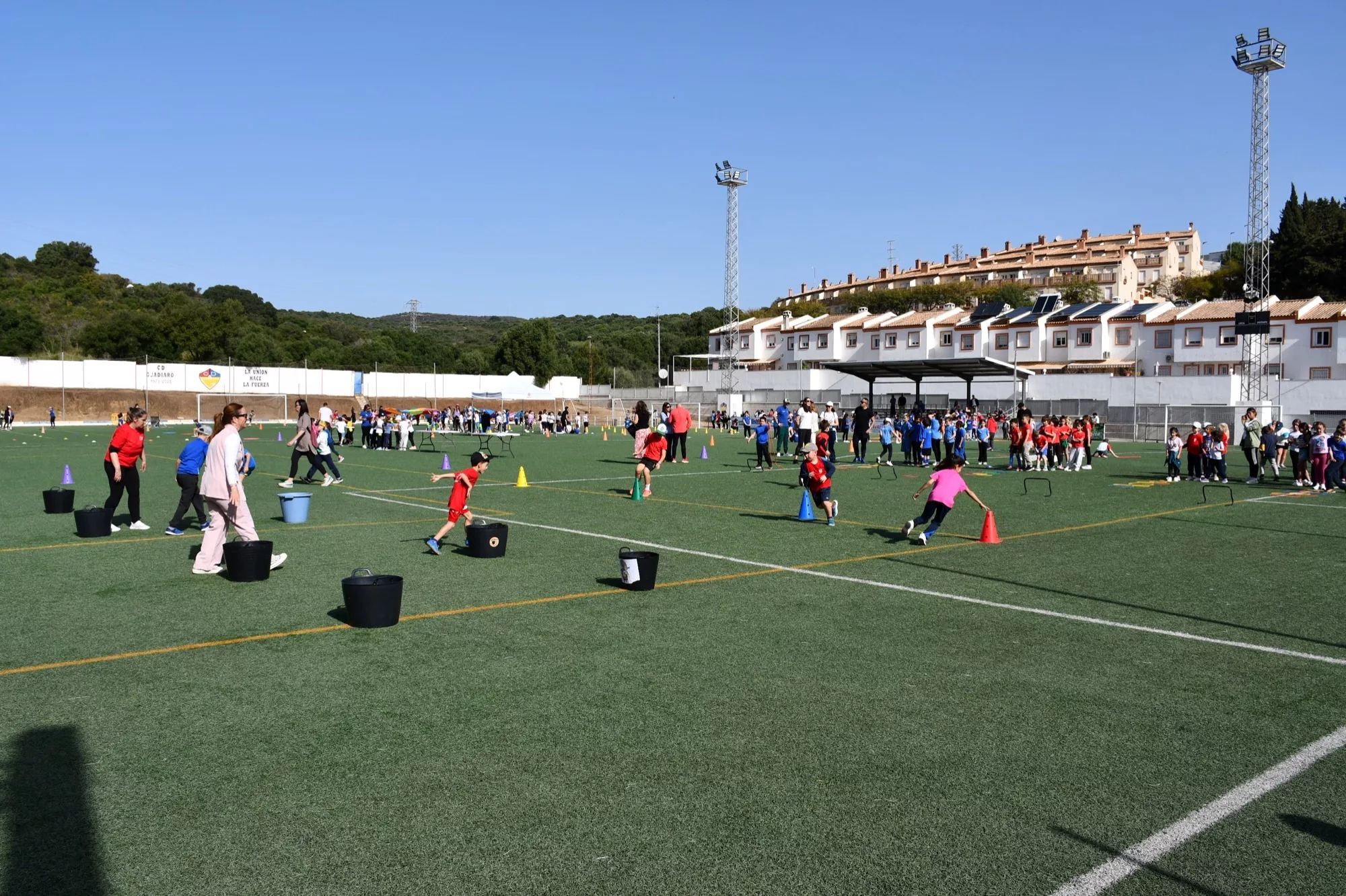 Más de mil pequeños de cinco colegios sanroqueños, así como de los centros de Tesorillo y Secadero, participan de martes a viernes en la edición número 27 de los Juegos Predeportivos que cada año organiza el CEIP Gloria Fuertes. El Municipal La Unión de Guadiaro ha acogido este miércoles la segunda jornada de los juegos, dedicada al alumnado de Primero y Segundo de Primaria.