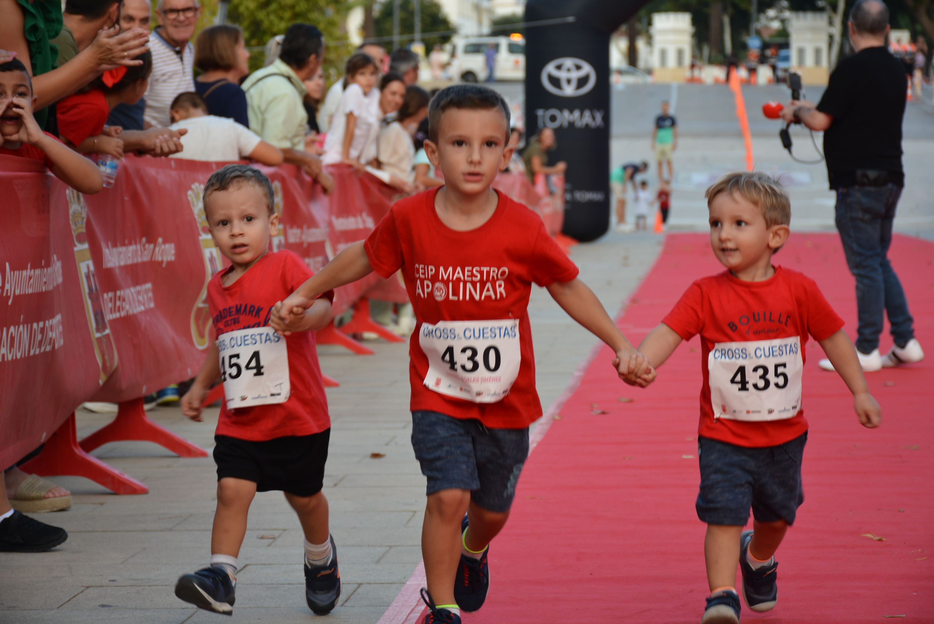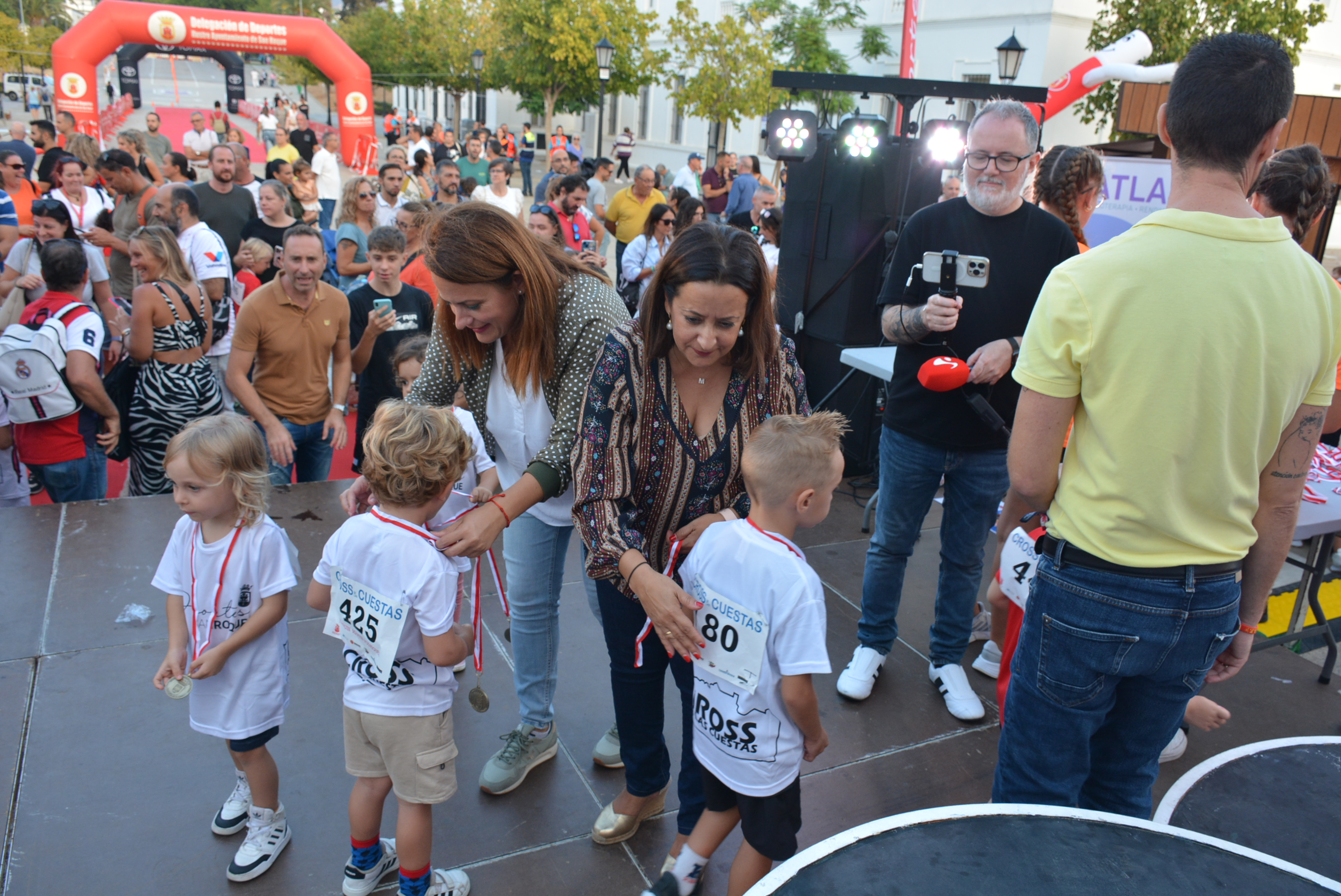 La carrera principal, que tendrá lugar el sábado 7 de octubre, contará con cuatro modalidades: cadete-senior (6.000 metros), adultos-master (6.000 metros), menores (distancias de 300 a 1.000 metros) y marcha solidaria (3.000 metros). Para este evento se ha confirmado la asistencia de más de 800 participantes que se van a encontrar en la Plaza de las Constituciones, desde la marcha solidaria, pasando por las categorías Benajmín, Alevín e Infantil, y con la carrera competitiva Senior a partir de las 21 horas. Cabe destacar que la “III Marcha Solidaria Cross de las Cuestas”, cuenta con un recorrido de 3.000 metros. En esta edición, la causa solidaria será la Asociación Pequeños Héroes Sin Capa, dedicada a la lucha en favor de personas afectadas por problemas oncológicos en la infancia.
