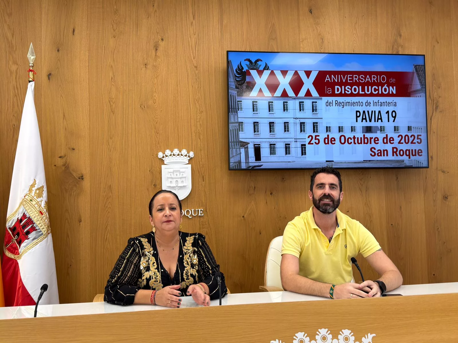 Con motivo del 30 aniversario de la disolución del Pavía 19, este sábado 25 se vivirán en San Roque varios actos, entre ellos un desfile del Cuarto Tercio de la Legión en la Plaza de las Constituciones, a las 12 del mediodía. Los teniente de alcalde de Seguridad Ciudadana, David Ramos, y de Tradiciones, María Collado, animan a los ciudadanos del municipio y de la comarca a asistir al acto y poder conocer más la historia militar de la ciudad.