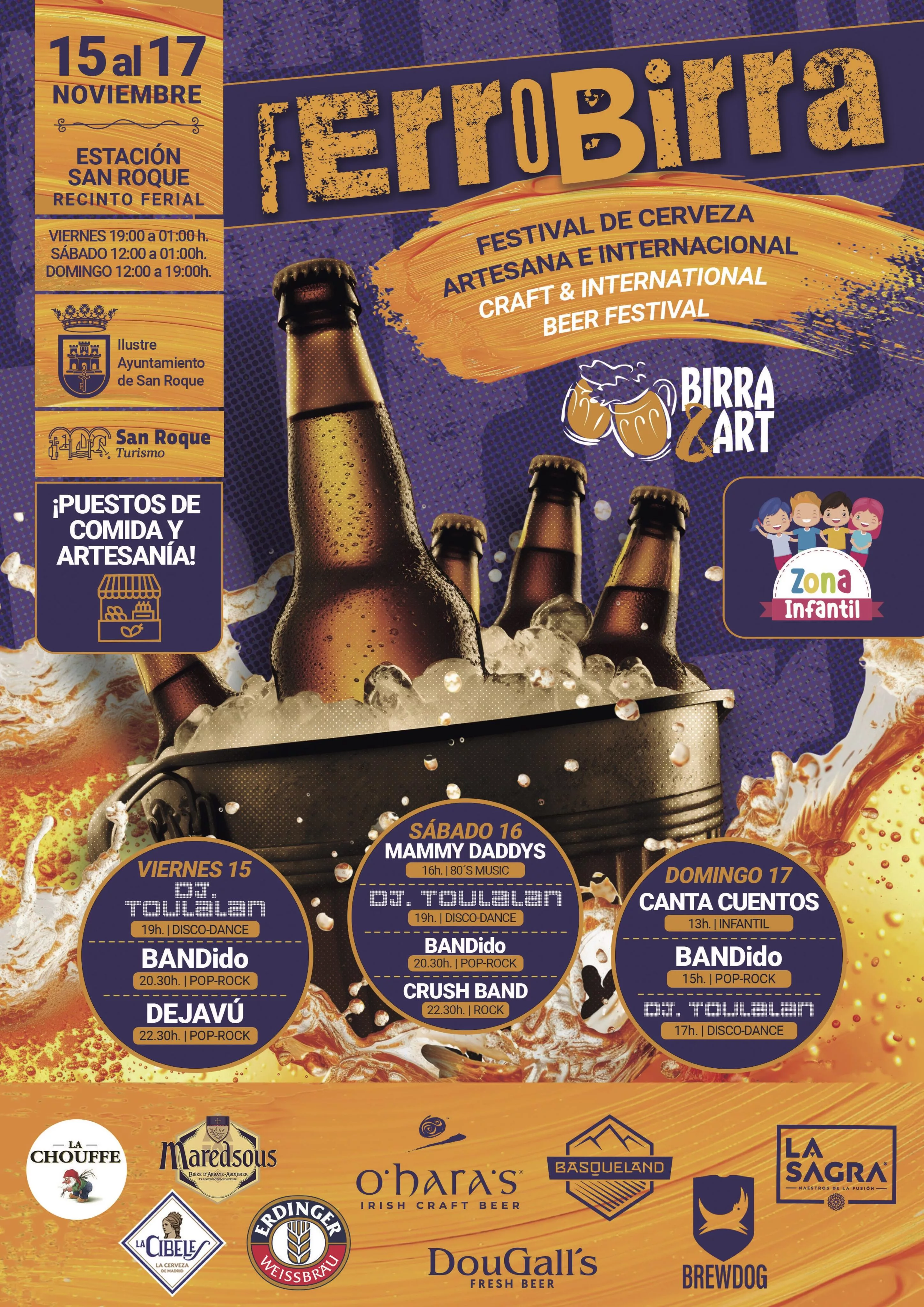 El recinto ferial de la Estación acogerá, entre el viernes 15 y el domingo 17 de noviembre, el Festival de la Cerveza Artesana e Internacional “FerroBirra”, una actividad en la que participa el Ayuntamiento de San Roque. Además de una amplia oferta de esta bebida, los asistentes podrán disfrutar de puestos de comida y artesanía, zona infantil y actuaciones musicales de distintos estilos.