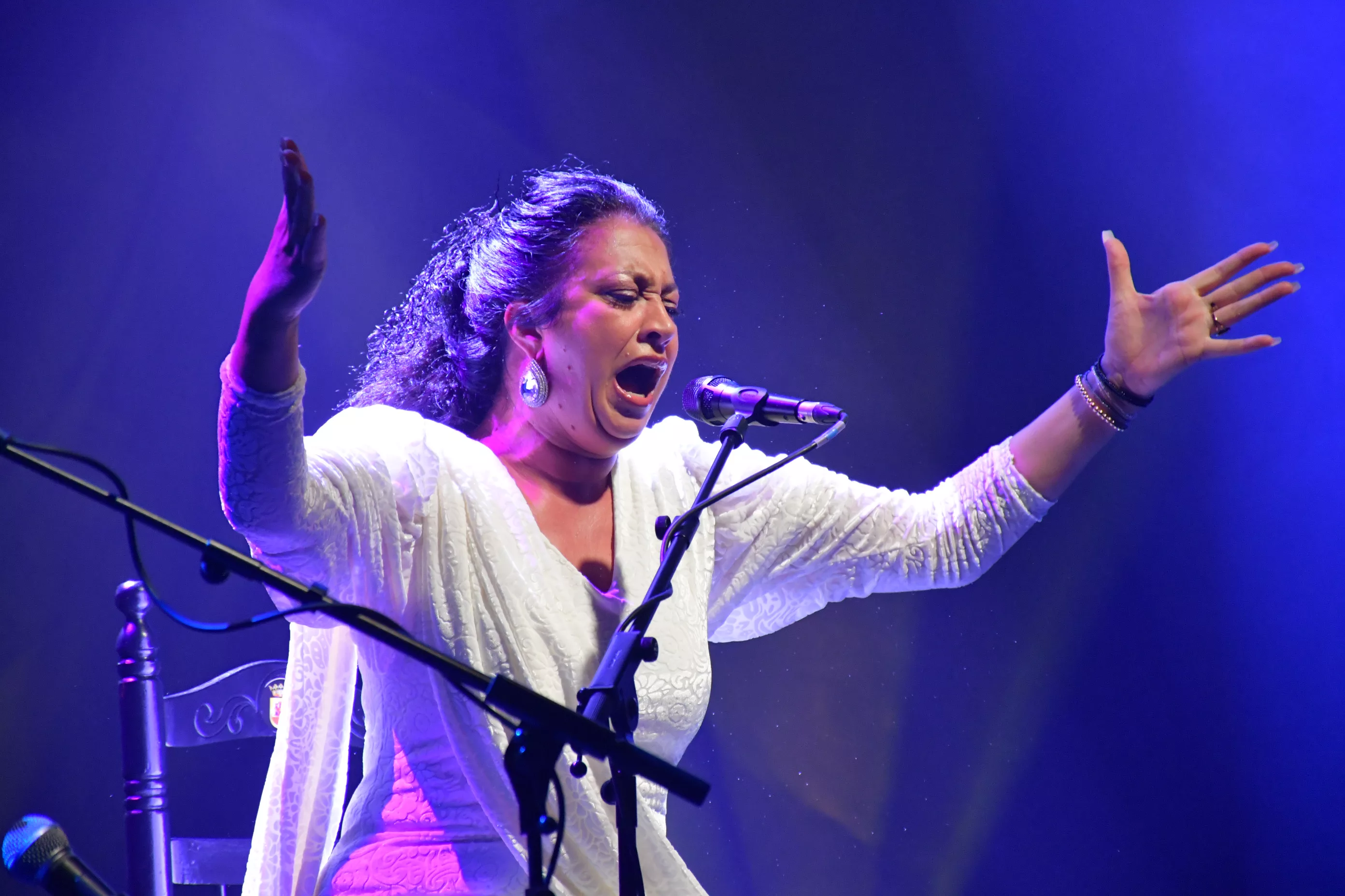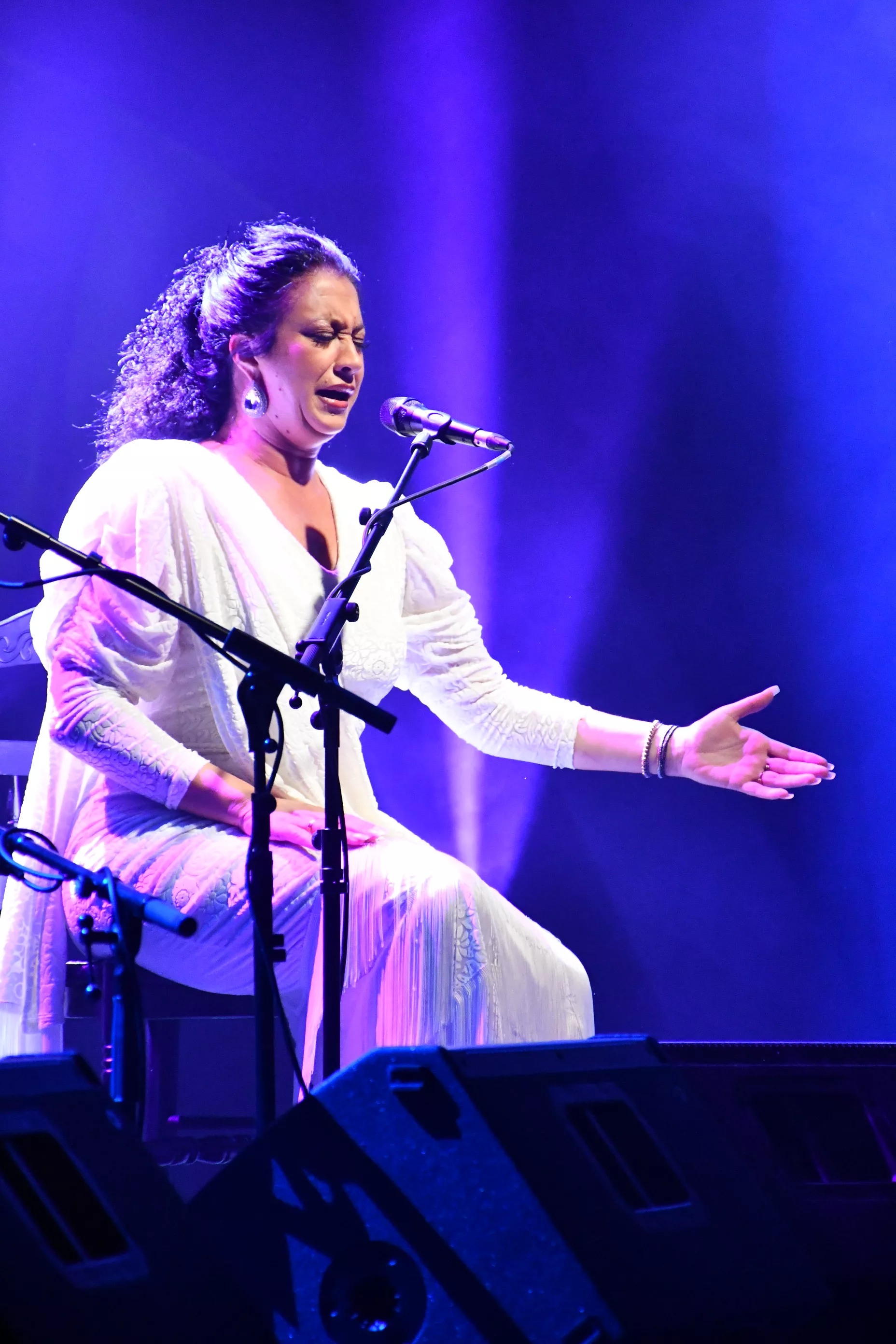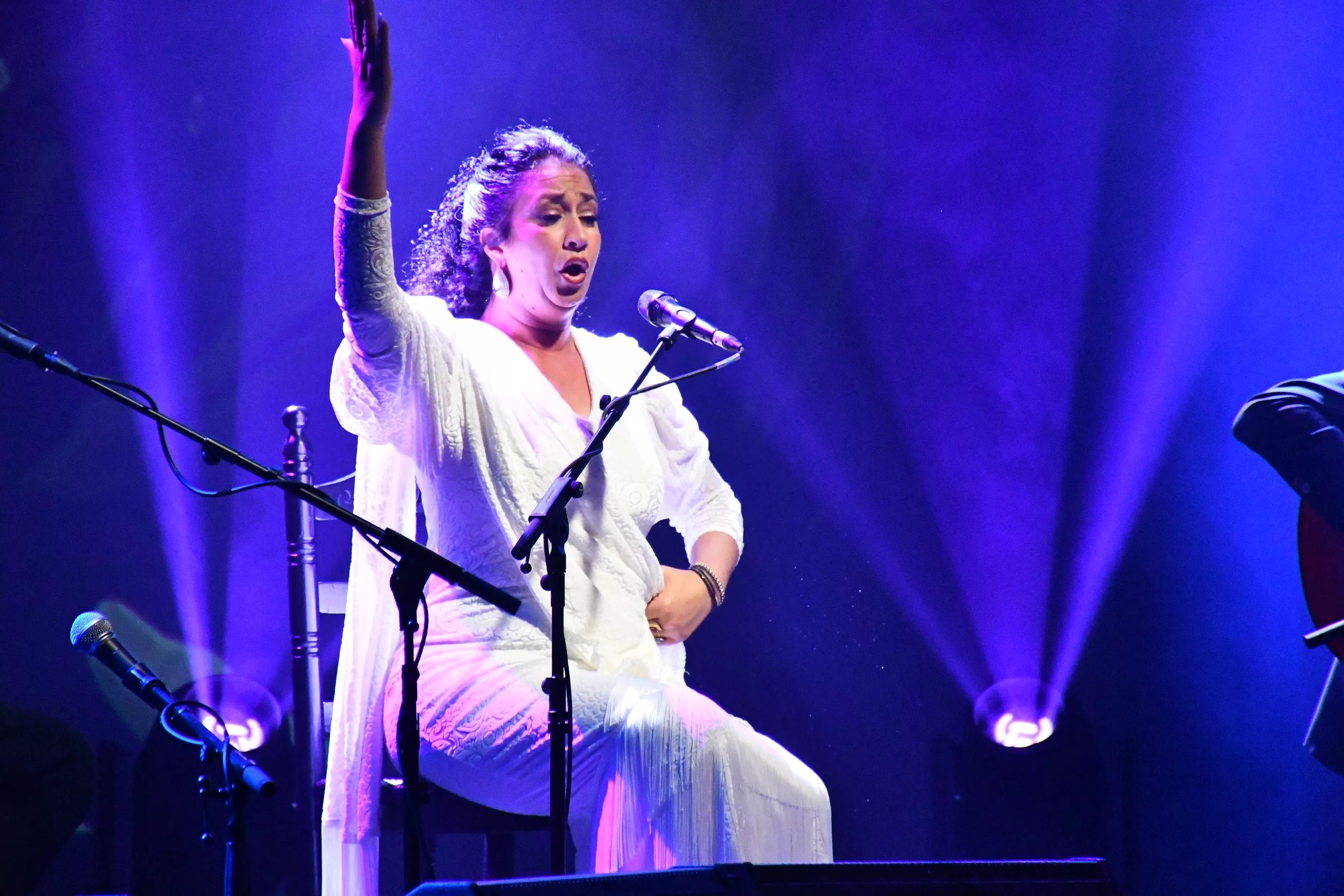 La segunda actuación de la última noche de la Bienal fue de La Fabi, Fabiola Pérez, tiene una personalidad arrolladora que comenzó a los 11 años. Es una artista que no deja indiferente a nadie con su hechura tan flamenca y anoche en el Galiardo armó un lío de los buenos.