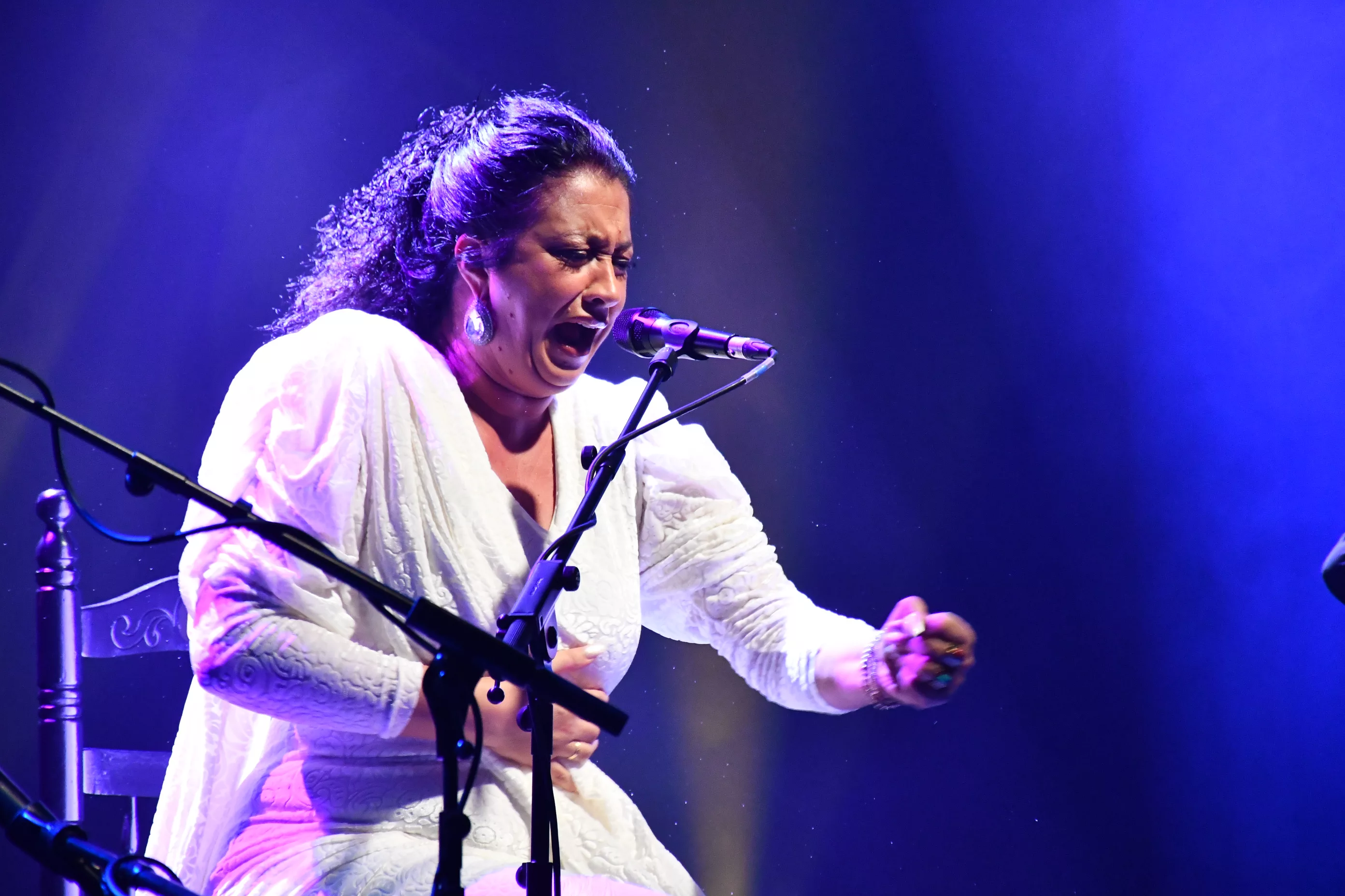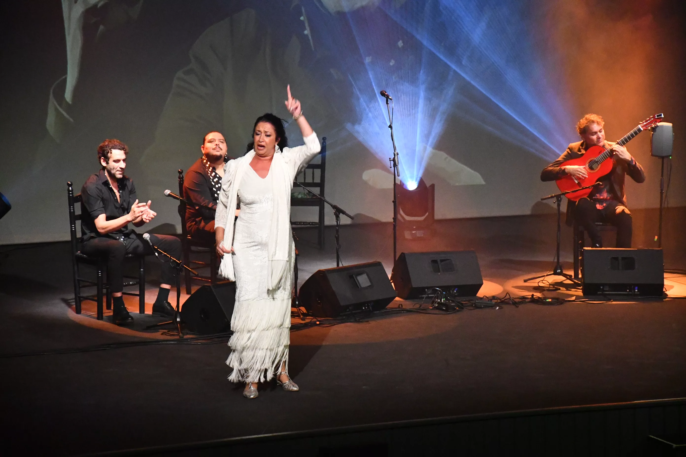 Poderosa y deslumbrante con su traje blanco, La Fabi demostró el poderío que posee y dijo que se encontraba en esta Bienal sanroqueña sobre todo por su unión a la figura de Canela. Finalizó su actuación con unas bulerías, de pie y bailando ante un público entregado y añadiendo una letra nombrando a San Roque.