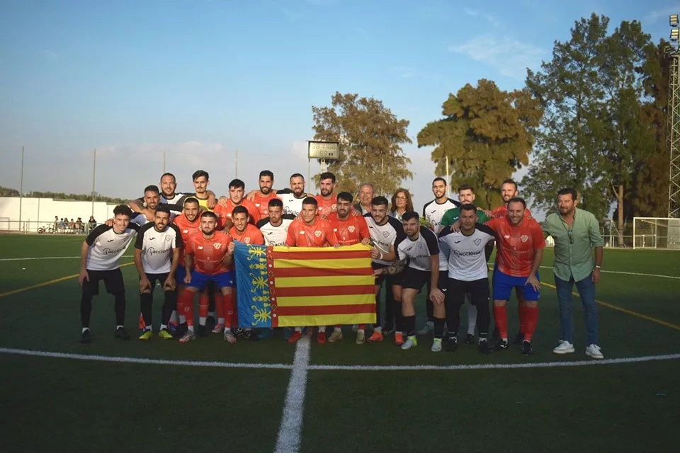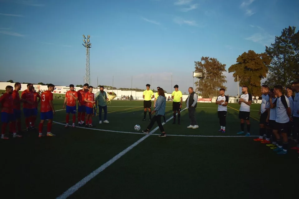 Previa al inicio del encuentro se compartió el momento del saque de honor por parte Angela Sáenz Cabrera y José Antonio Vidal Sánchez, que son los padres del aficionado de Trebujena, en símbolo de apoyo y ánimo, donde por culpa de la DANA que azotó Valencia, perdió todo.