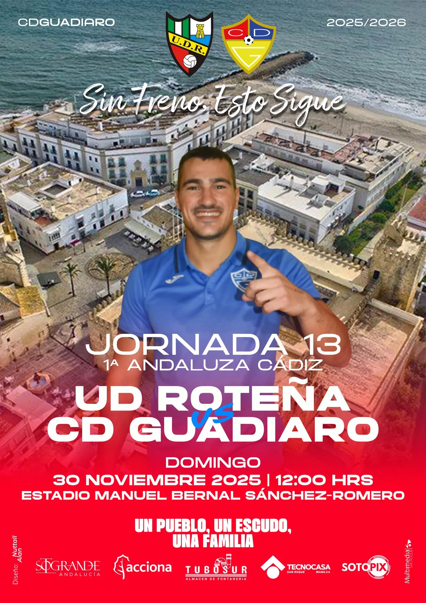 Después de la gran goleada por 6 a 0 del pasado domingo en La Unión frente al Puerto Real, el CD Guadiaro intentará escalar más puestos en la clasificación el próximo día 30, a las 12:00 horas, en el campo de la Roteña UD. El colegiado Cristian Moreno se encargará de arbitrar el encuentro, correspondiente a la jornada 13 de Primera Andaluza Cádiz.