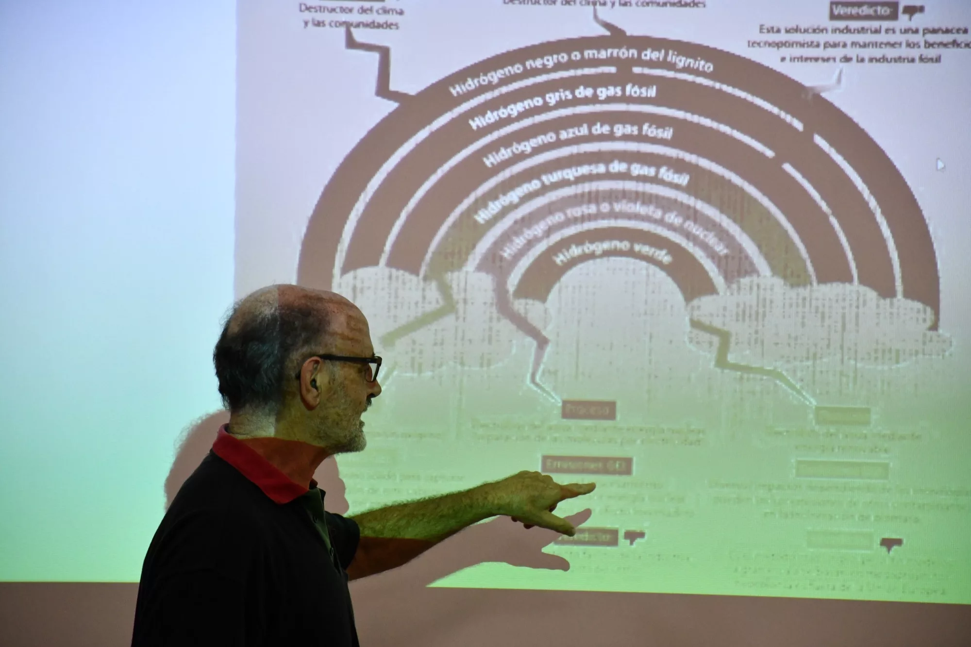 Bajo el título “ El Hidrógeno verde, verde de inmaduro o de sostenible”, Daniel López Marijuán, responsable del área de Residuos, Energía y Cambio Climático de Ecologistas en Acción Andalucía, ha expuesto la situación en la que se encuentra en la actualidad la producción de Hidrógeno Verde y las necesidades que plantea.