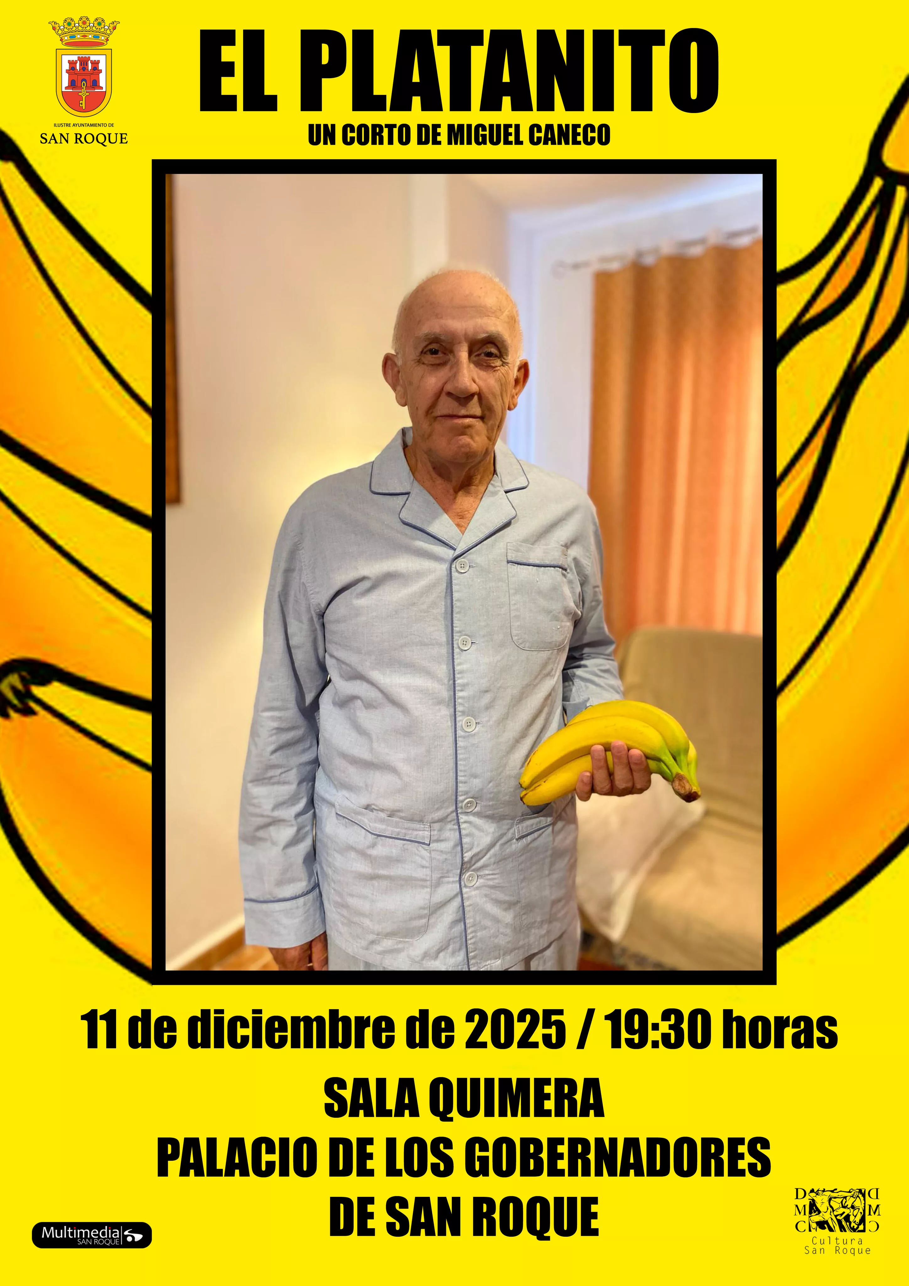 La Delegación de Cultura del Ayuntamiento de San Roque, que dirige la teniente de alcalde Ana Ruiz, organiza la proyección, el próximo 11 de diciembre, del cortometraje “El platanito”, del realizador sanroqueño José Miguel González, conocido como Miguel Caneco. El pase será a las 19.30 horas en la Sala Quimera del Palacio de los Gobernadores.